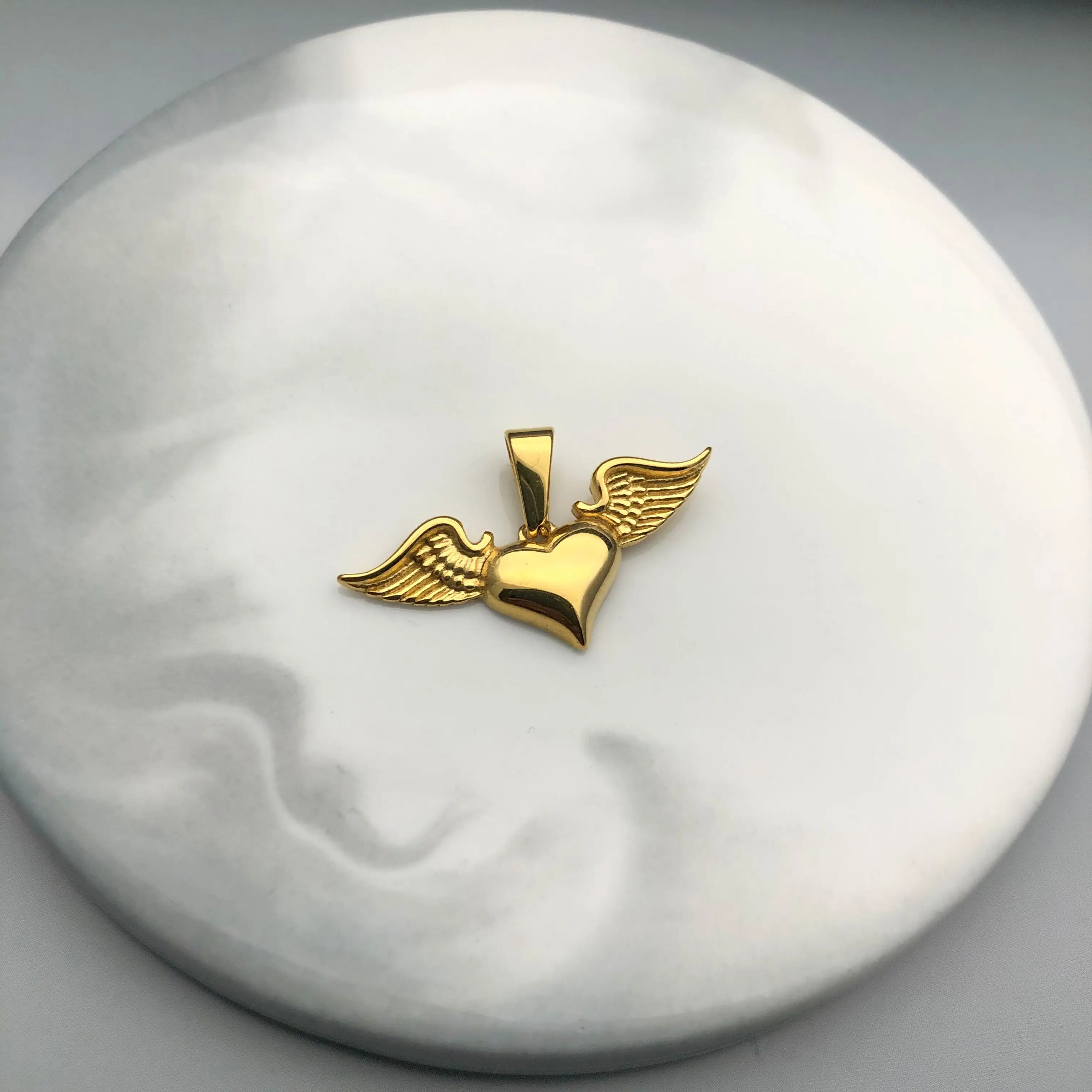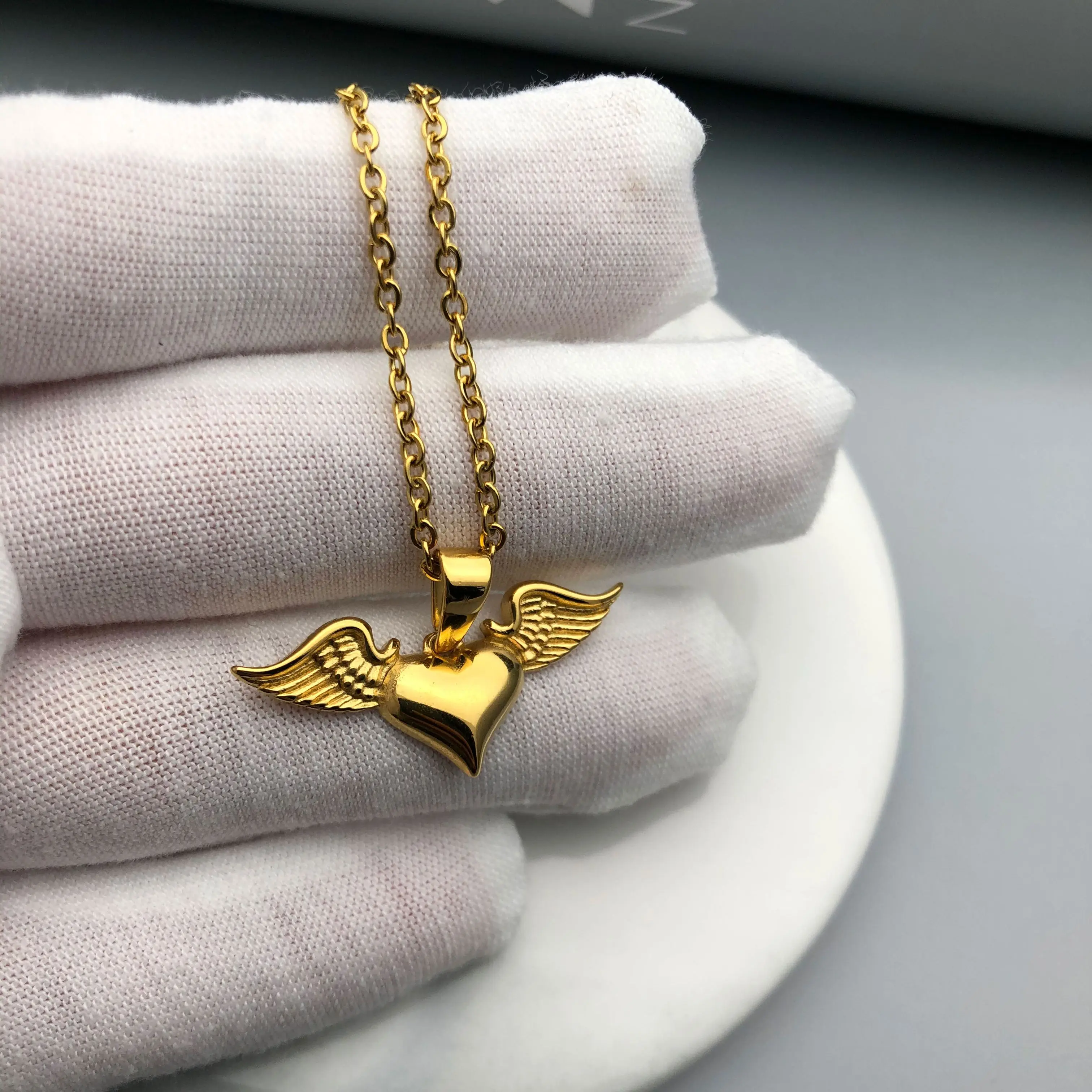 Модное золотое ожерелье из нержавеющей стали, ожерелье с подвеской в виде крыла, сердца, подвески в виде сердца, мужские ювелирные украшения в стиле панк, ожерелье с ангельскими крыльями