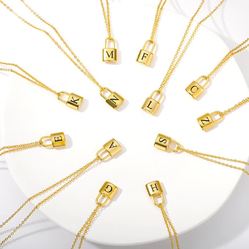 Минимализм A-Z Имя Начальная замок ожерелья для женщин табличка ювелирные изделия из нержавеющей стали, с изображением букв алфавита, замок Ожерелье Bijoux Femme (украшения своими руками)