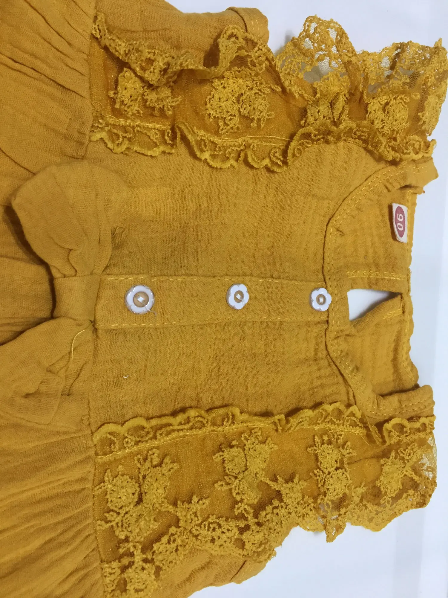 Комбинезон детский, из хлопка и льна, с кружевом и бантом