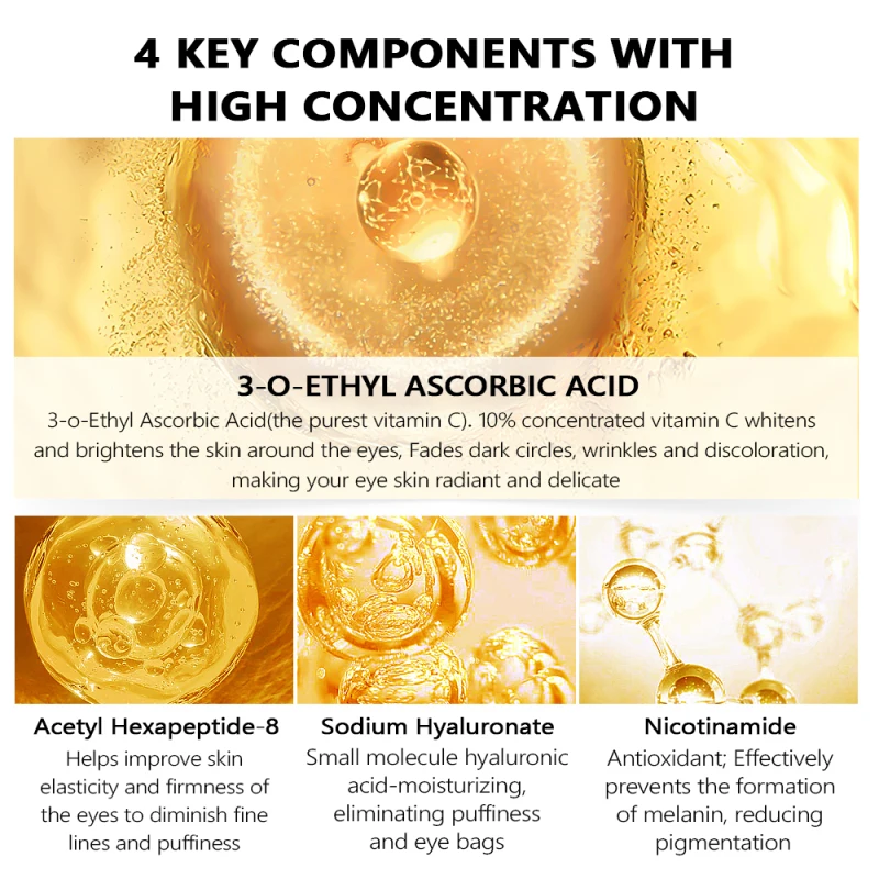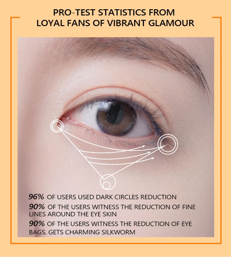 [Эффект]: содержит VC (3-o-этиласкорбицид, ceramide1 и различные растительные экстракты; Улучшает линии кожи вокруг глаз, улучшает увлажнение и упругость слое, с заботой о коже вокруг глаз; приклеивается к использованию, кожа полна и восстанавливает водный блеск