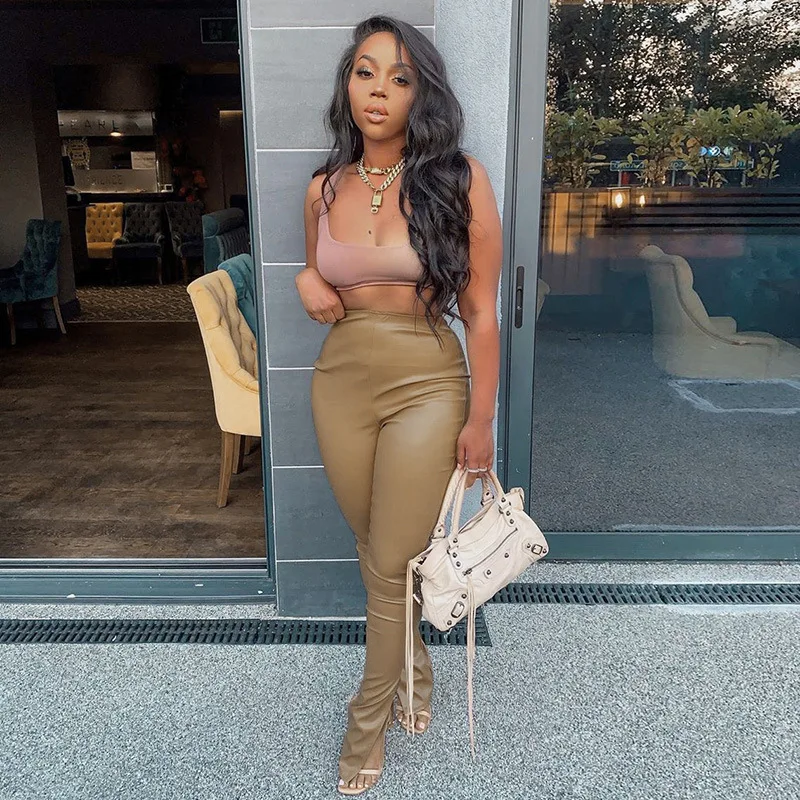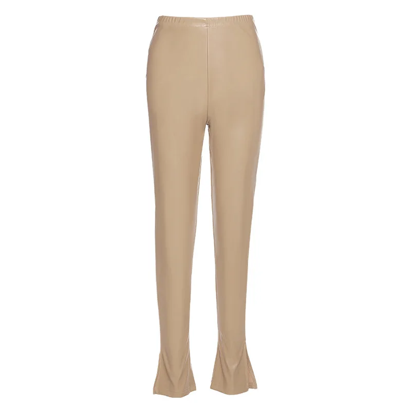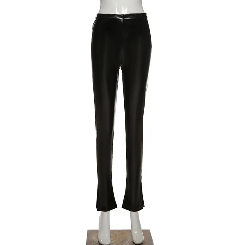 Yiallen однотонные Женские брюки из искусственной кожи с Боковым Ра...
