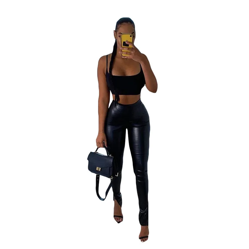Женские узкие брюки из искусственной кожи, длинные облегающие брюки...