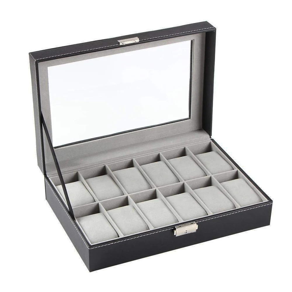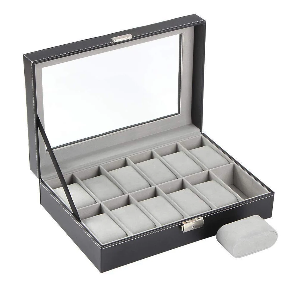12 Сетки Коробка для часов из искусственной кожи часы Органайзер часы Для мужчин кварцевые органайзер для часов коробка ювелирных изделий Дисплей часы держатель подарок D30