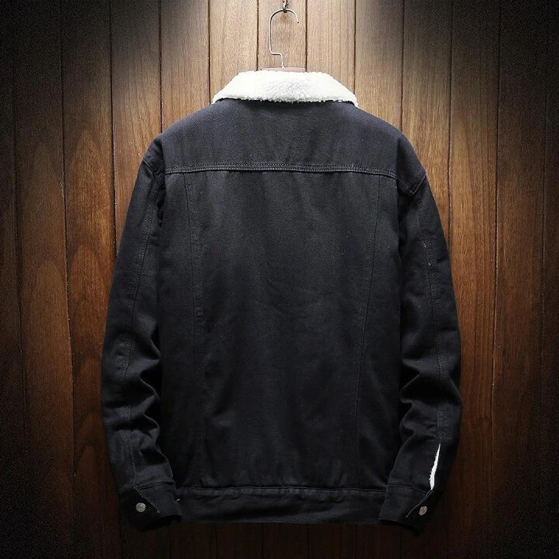 Мужская зимняя джинсовая куртка с бархатной подкладкой из овечьей ш...