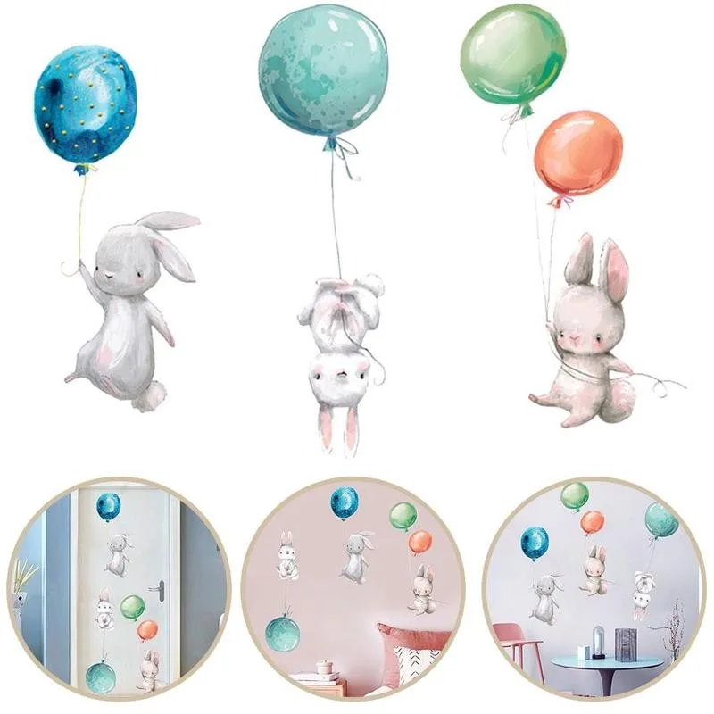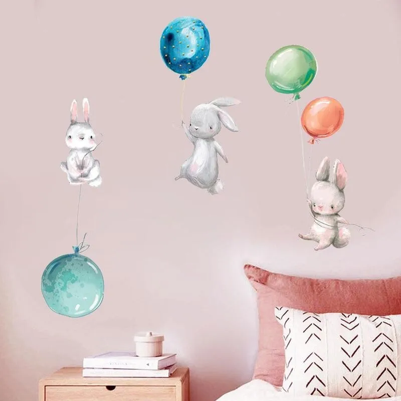 Воздушные шары, кролики, пасхальные настенные Стикеры для детской спальни, настенные стикеры s для детской комнаты, украшение, серый Пасхальный кролик, настенные стикеры s