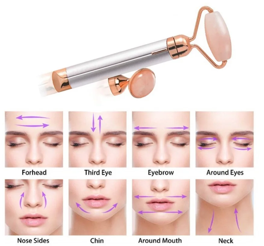 Розовый КВАРЦЕВЫЙ ролик, Электрический вибрирующий натуральный лифт...