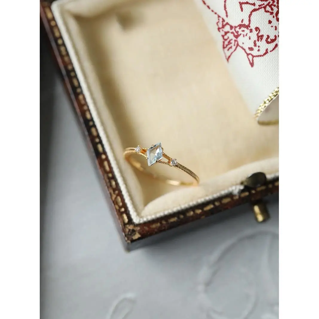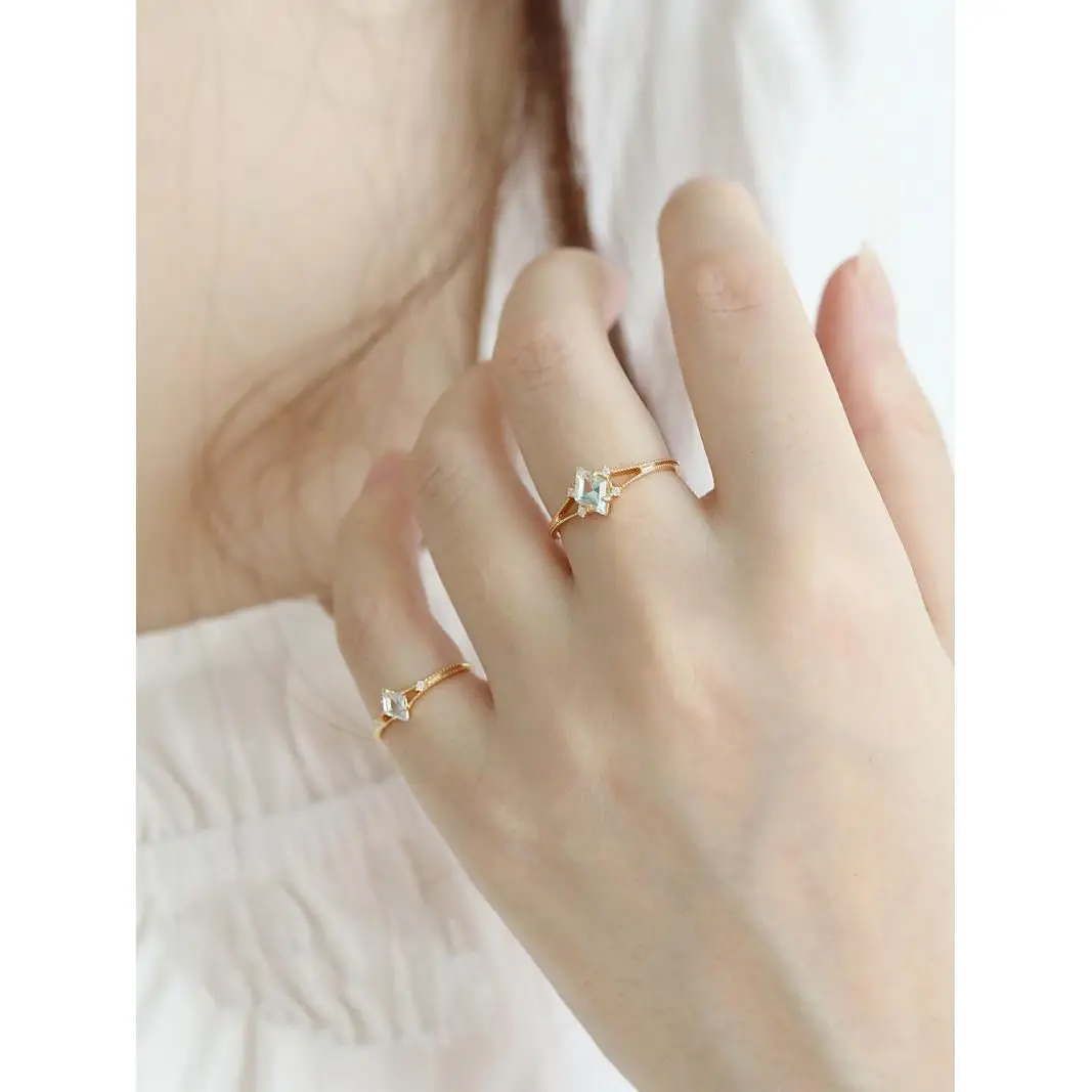 Оригинальный дизайн ледяной голубой бриллиантовый граненый топаз открытое регулируемое кольцо геометрические блестящие очаровательные женские серебряные ювелирные изделия