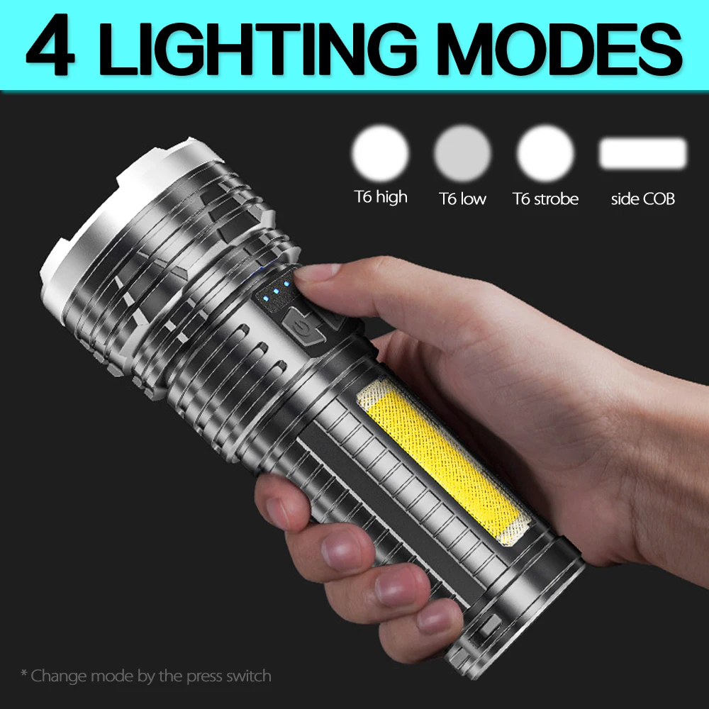 Pocketman Новый сильный светильник вспышки светильник T6 вспышка светильник фонарь напольный светильник ing зарядка через USB потолочные светильник с боковыми светильник Мощность Дисплей