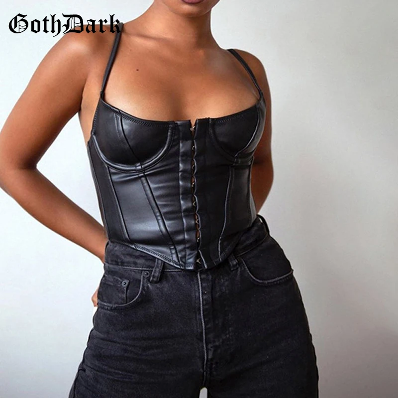 Женский корсет Goth Dark, черный корсет из искусственной кожи на тонких бретелях