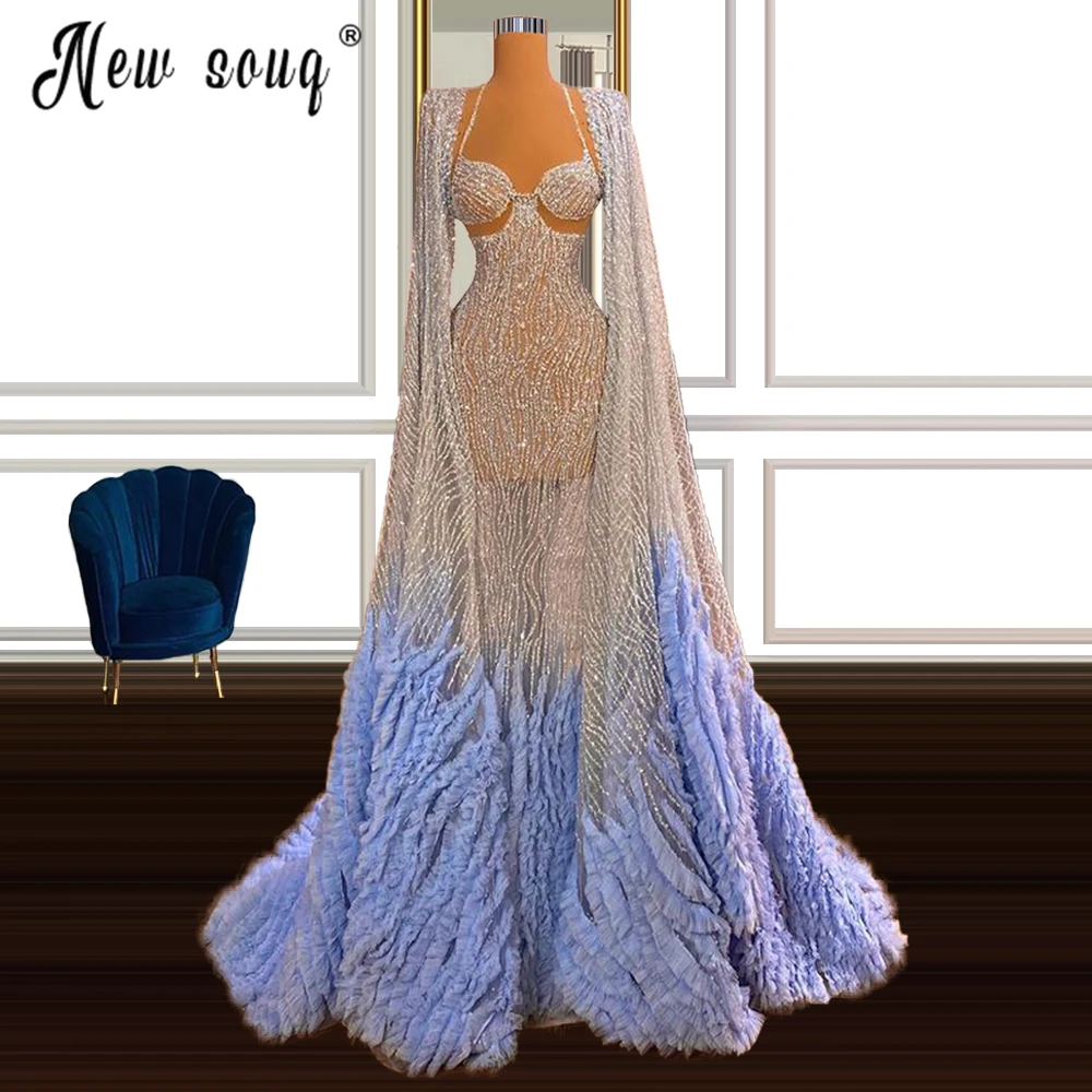 Ярко-синий, вечерние платья с вышивкой бисером, длинное арабское пл...