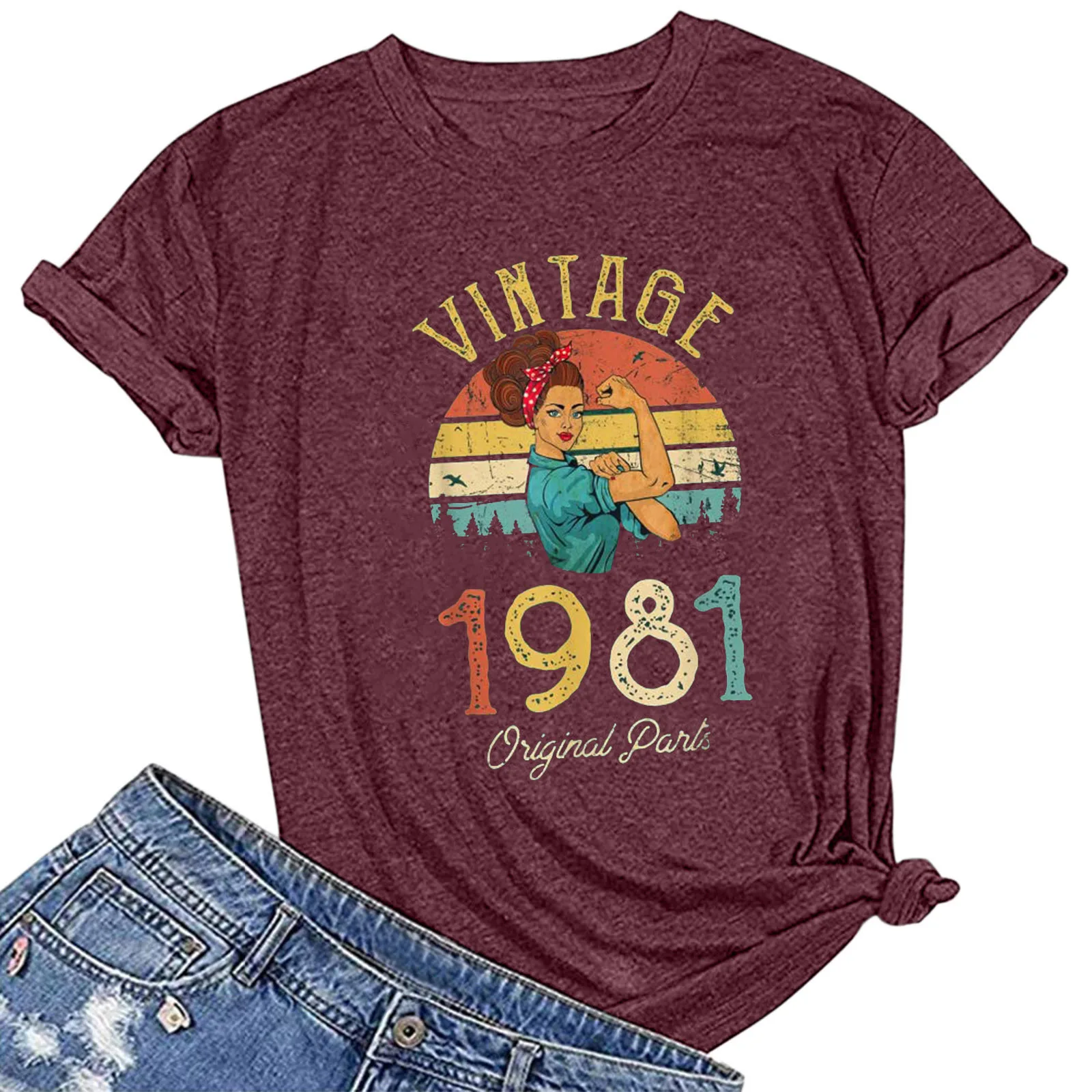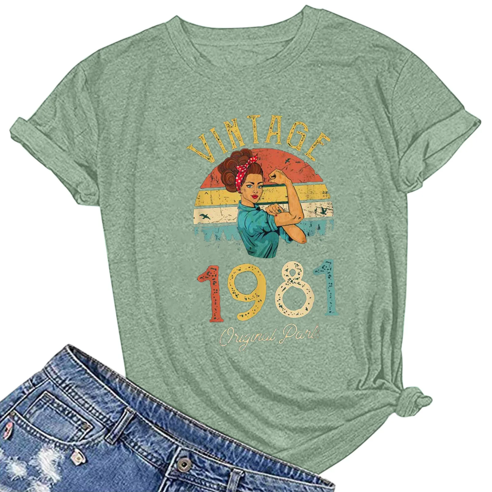 40 # женские футболки на каждый день, Ретро стиль, с принтом в виде букв, с круглым вырезом, футболки с короткими рукавами с надписью Туника Летняя Повседневная Свободная Футболка