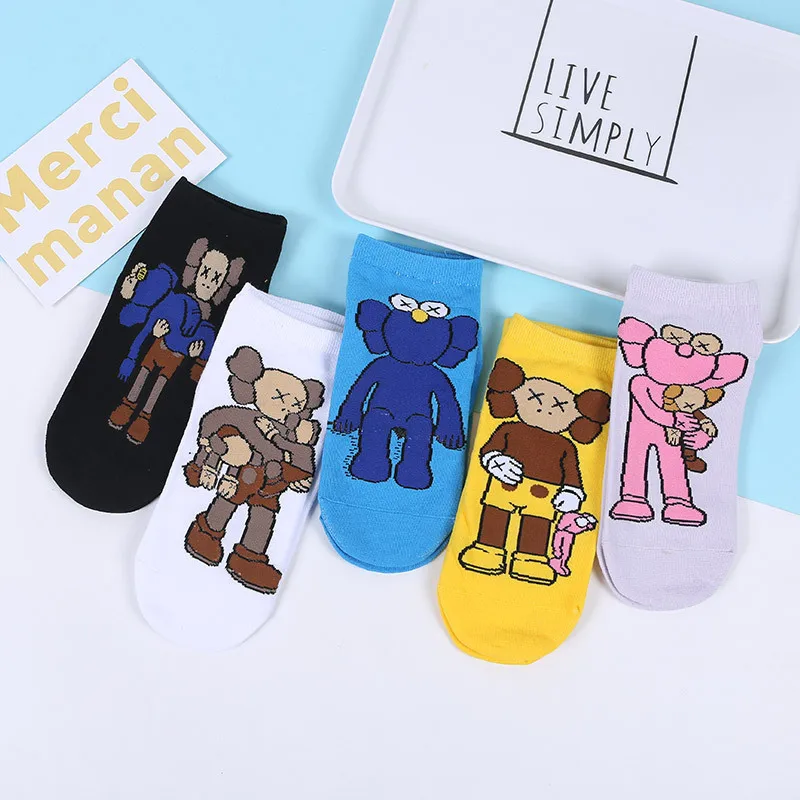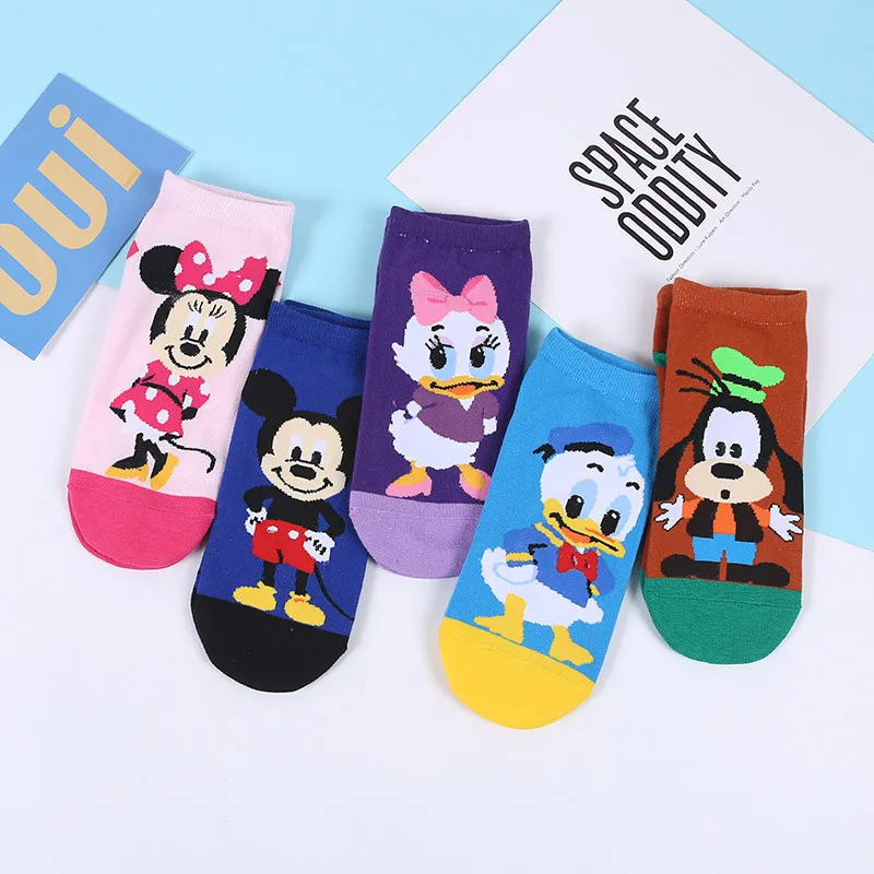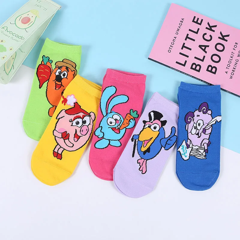 Носки женские короткие демисезонные с мультяшным принтом, 5 пар