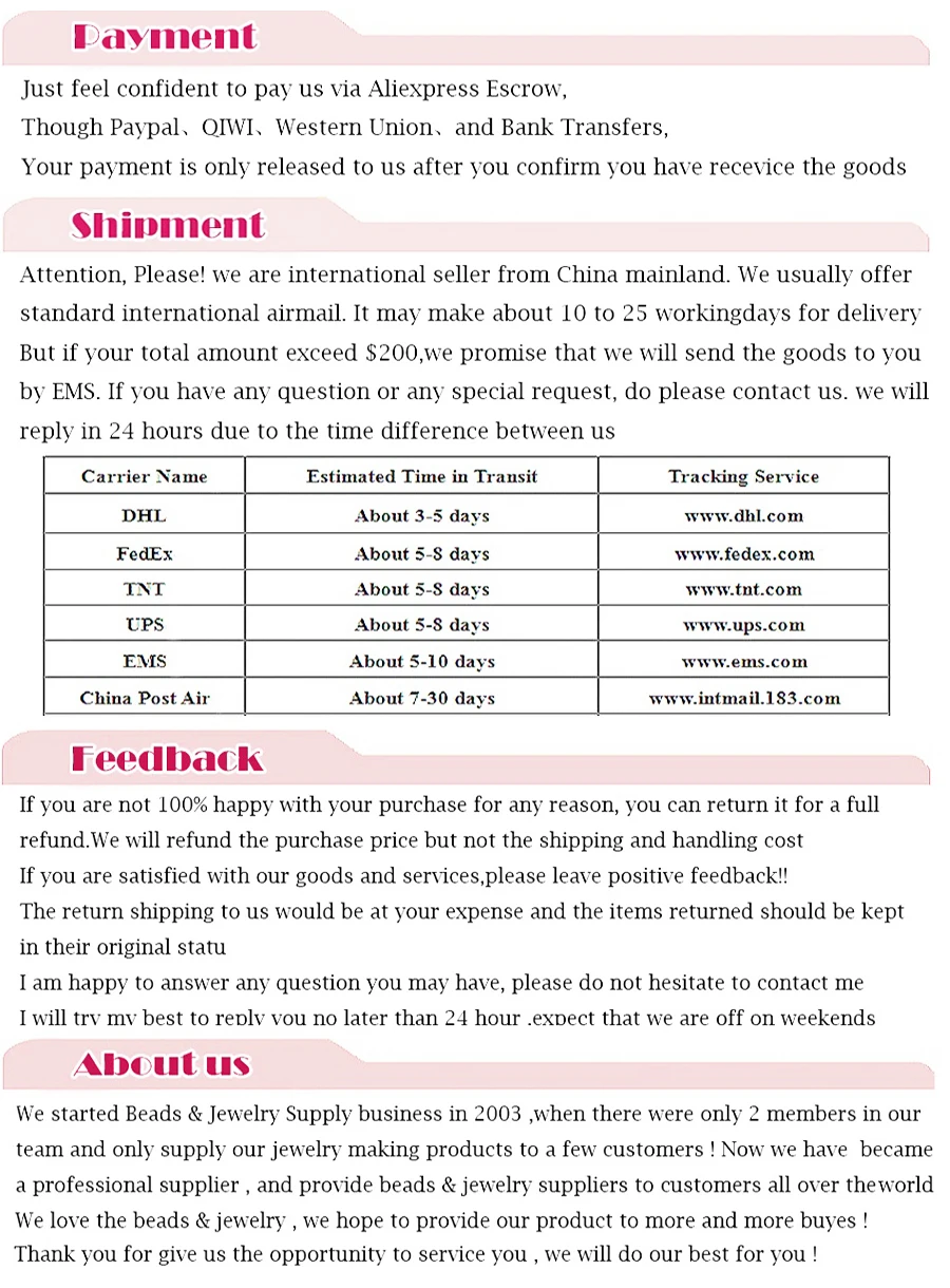 2. Если сумма вашего заказа меньше 7 долларов США, товары будут отправлены через Почта Китая Обычная Маленькая Упаковка Плюс свободно.
