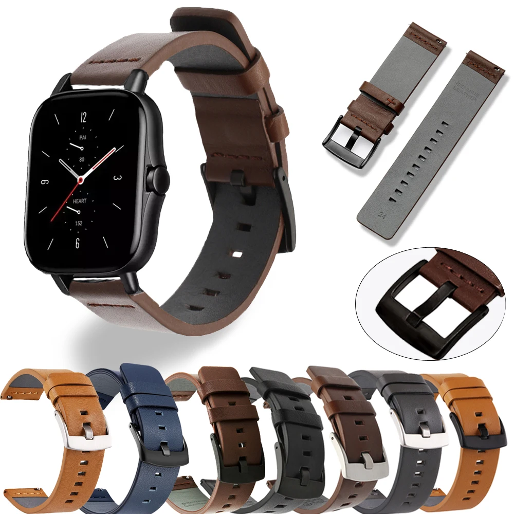Кожаный ремешок для Amazfit GTS2eGTS2 MiniGTR 42 47 ммGTR22EStratos...