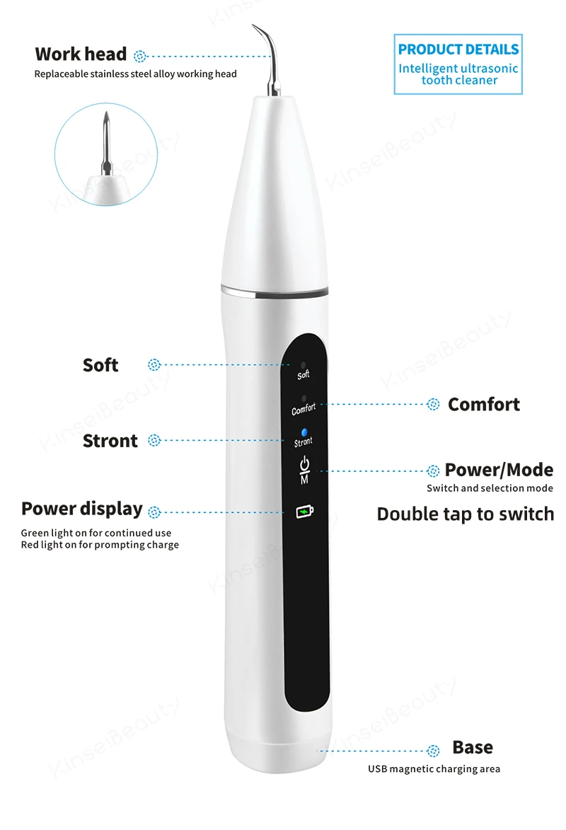 1. Пожалуйста, подключите шнур питания для включения, если светильник индикатора включен, это означает, что он включен.2. Пожалуйста, выберите подходящий рабочий наконечник (рабочий наконечник должен быть затянут маленькой отверткой), поэтому его можно использовать на зубах при установке (слегка используйте небольшую силу для расчета при работе).Примечание: после вылета он не будет производить ультразвуковые волны против воздуха; Контакт с зубами, металлом или керамическим стеклом будет производить ультразвуковую вибрацию.