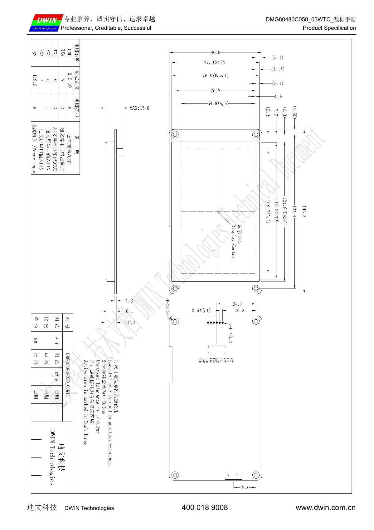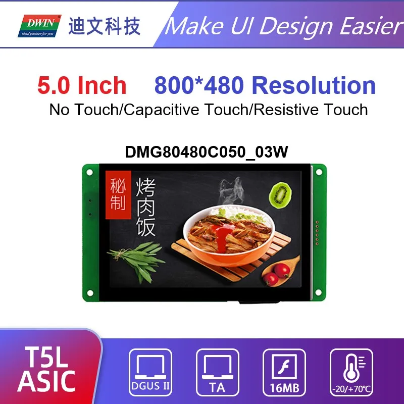 ЖК-дисплей DWIN TFT, 5-дюймовая умная сенсорная панель Arduino HMI 800*480, CTP-экран, Модуль UART коммерческого класса, dmg80480c050 _ 03