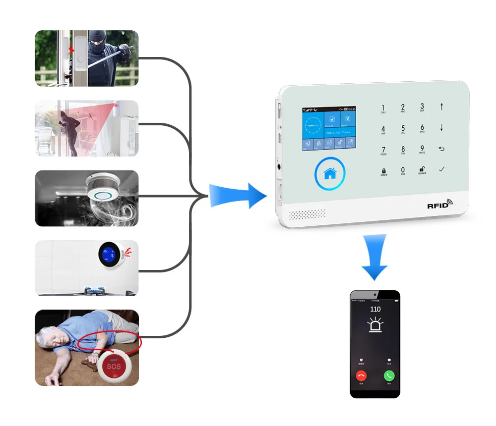 Беспроводная система охранной сигнализации HIVA PG-103 Tuya Wifi GSM с RFID-картой, датчиком движения и дистанционным управлением через приложение