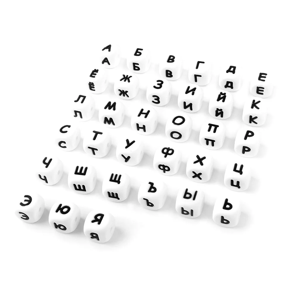 Бусины с русскими буквами сделай сам, ожерелье для прорезывания зубов, цепочка для пустышки, детский прорезыватель, пищевой силикон, 12 мм, жевательные бусины с алфавитом, 10 шт.