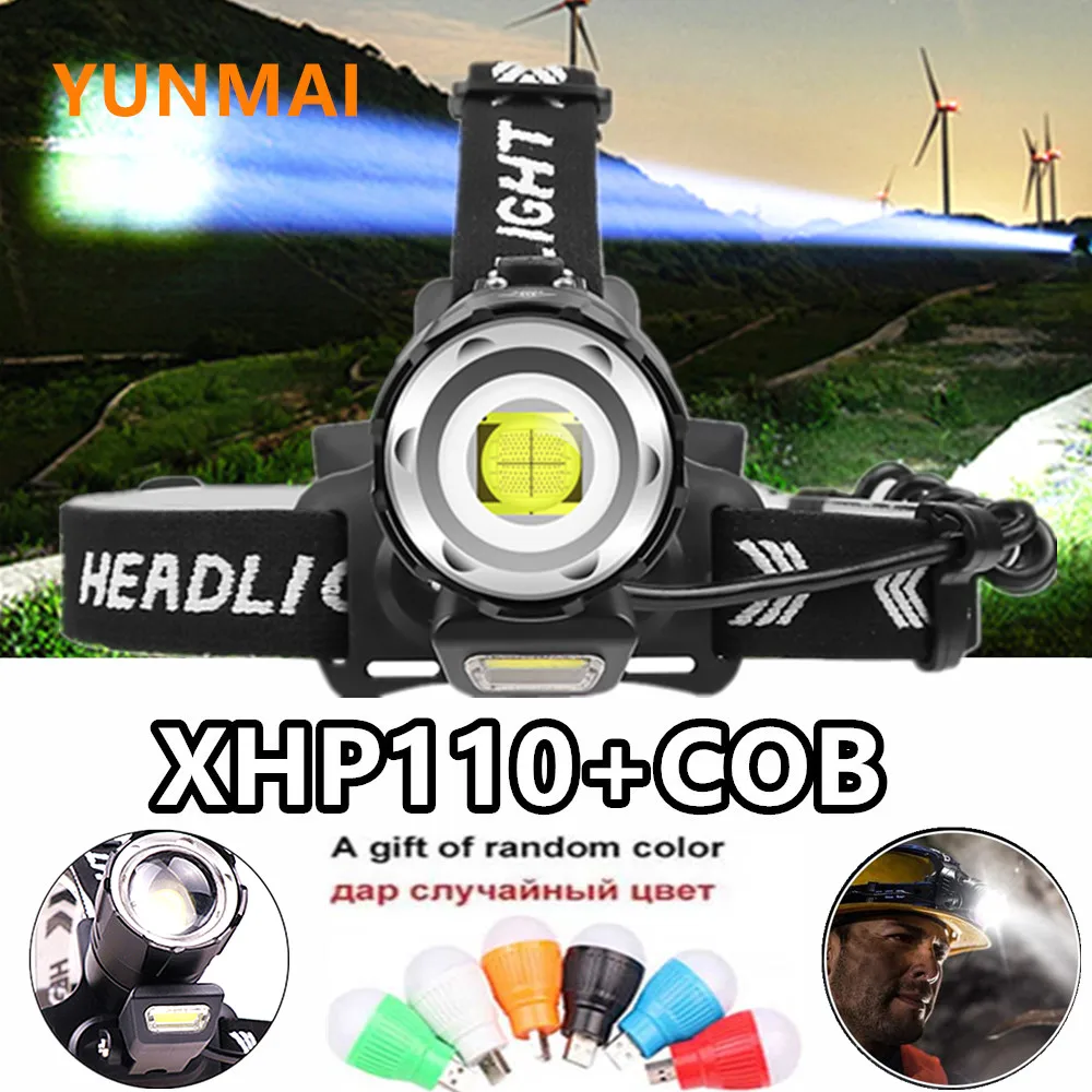 Мощный светодиодный головной фонарь XHP110, 1000 лм, XHP70.2 ярчайший Головной фонарь USB, перезаряжаемый рабочий Головной фонарь COB для рыбалки