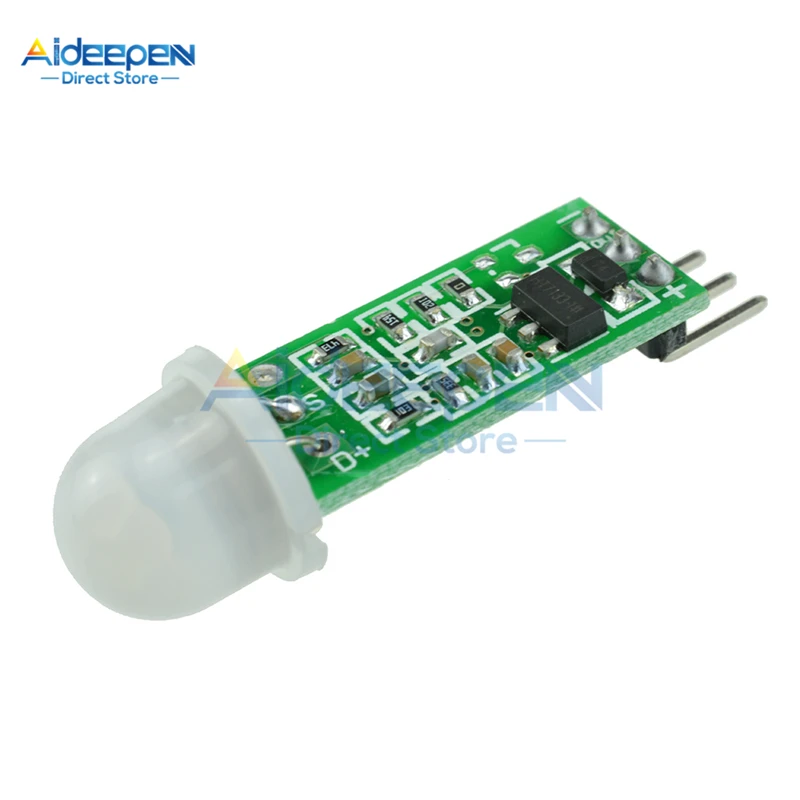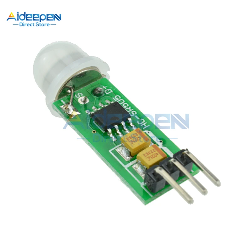 HC-SR505Модуль обнаружения малого тела основан на инфракрасной технологии, автоматическойПродукты управления, высокая чувствительность, высокая надежность, ультра-маленький,Режим работы с сверхнизким напряжением. Широко используется в различных авточувствительныхЭлектрическое оборудование, особенно автоматическое управление на батарейкахПродукты.Характеристики:Диапазон рабочего напряжения: DC4.5-20VСтатический ток: <60uAВыход уровень: высокая 3,3 V/с низким напряжением 0 ВТриггер: повторяющийся триггер (по умолчанию)Время задержки: по умолчанию 8S + -30% (может быть настроен на несколько десятых-десятки минут)Размеры печатной платы: 10*23 ммУгол индукции: <100 градусов угол конусаИндукционное расстояние: 3 метраРабочая температура: -20 - + 80 градусовРазмеры сенсорного объектива: диаметр: 10 мм (по умолчанию)Особенности:АвтоматическийИндукция: чтобы войти в диапазон чувствительности, выход высокий, людиОставьте диапазон датчика автоматически оттягивать высоко, выход низкий.Очень маленький размер.Повторяющийся триггер: выход датчика высокий,Период задержки, если есть активность человека в его чувствительном диапазоне,Выход будет оставаться высоким, пока люди не уйдут после высокой переменной задержкиНизкий (автоматически Расширенный модуль датчика обнаруживает тело человека послеКаждый вид деятельности период задержки, и последний раз событиеОтправная точка времени задержки).Широкий диапазон рабочего напряжения: Рабочее напряжение по умолчанию DC4.5V-20V.Микропитание: ток quiescent <50 Микроампер, особенно для продуктов с автоматическим управлением на батарейках.Выход высокого сигнала: Легкая стыковка и все виды цепей.Применение:Индукционные лампы для телаИгрушки с датчиками телаПродукты безопасностиПромышленная автоматизация и контрольАвтоматическое определение электрического оборудованияАвтоматическое управление на батарейках