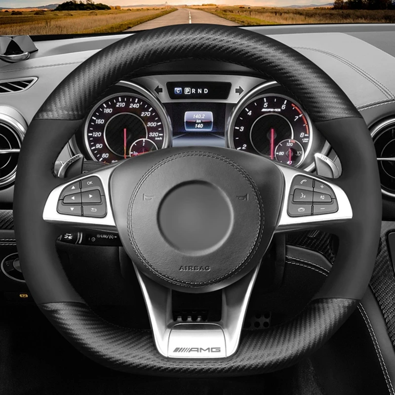 Прошитая вручную черная замша из углеродного волокна Чехлы рулевого колеса автомобиля для Mercedes-Benz A 45 C E S 43 63 CLA AMG CLS SLC GLA GLE GLS