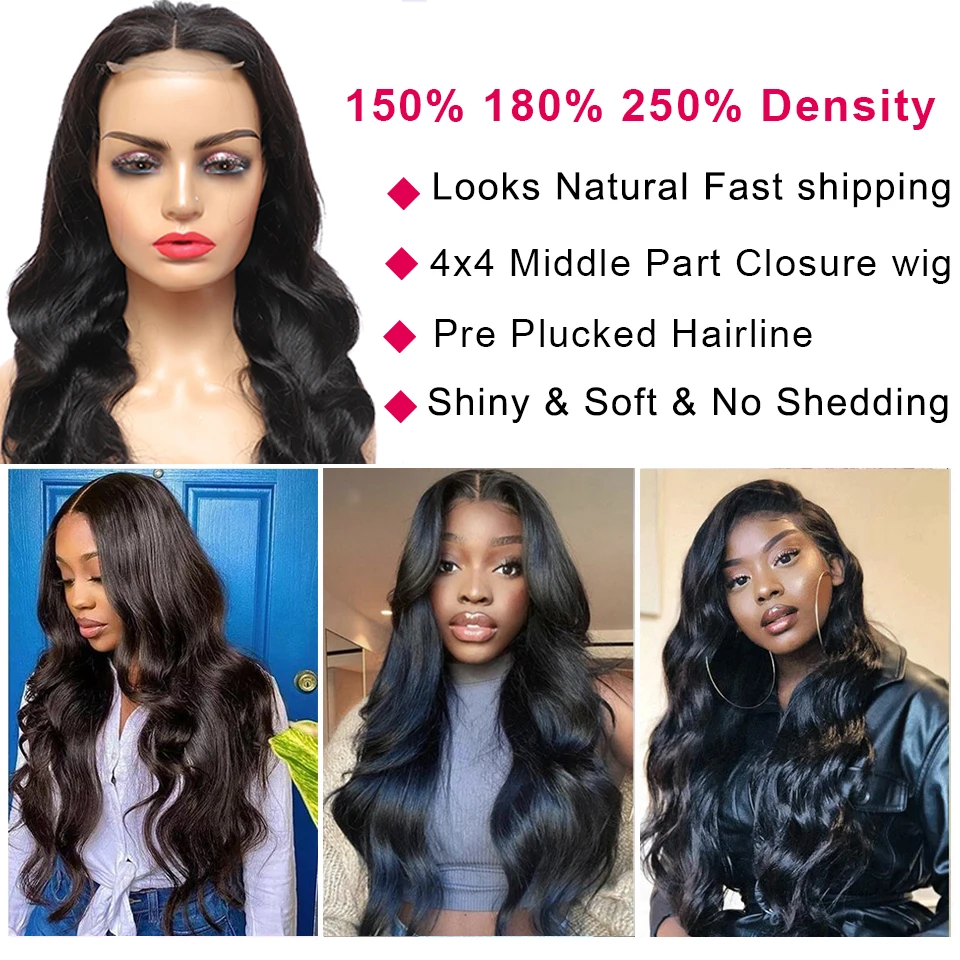Парик с застежкой шнурка 4x4, бразильский парик из натуральных волос с объемными волнами для женщин, предварительно выщипанные фронтальные парики шнурка