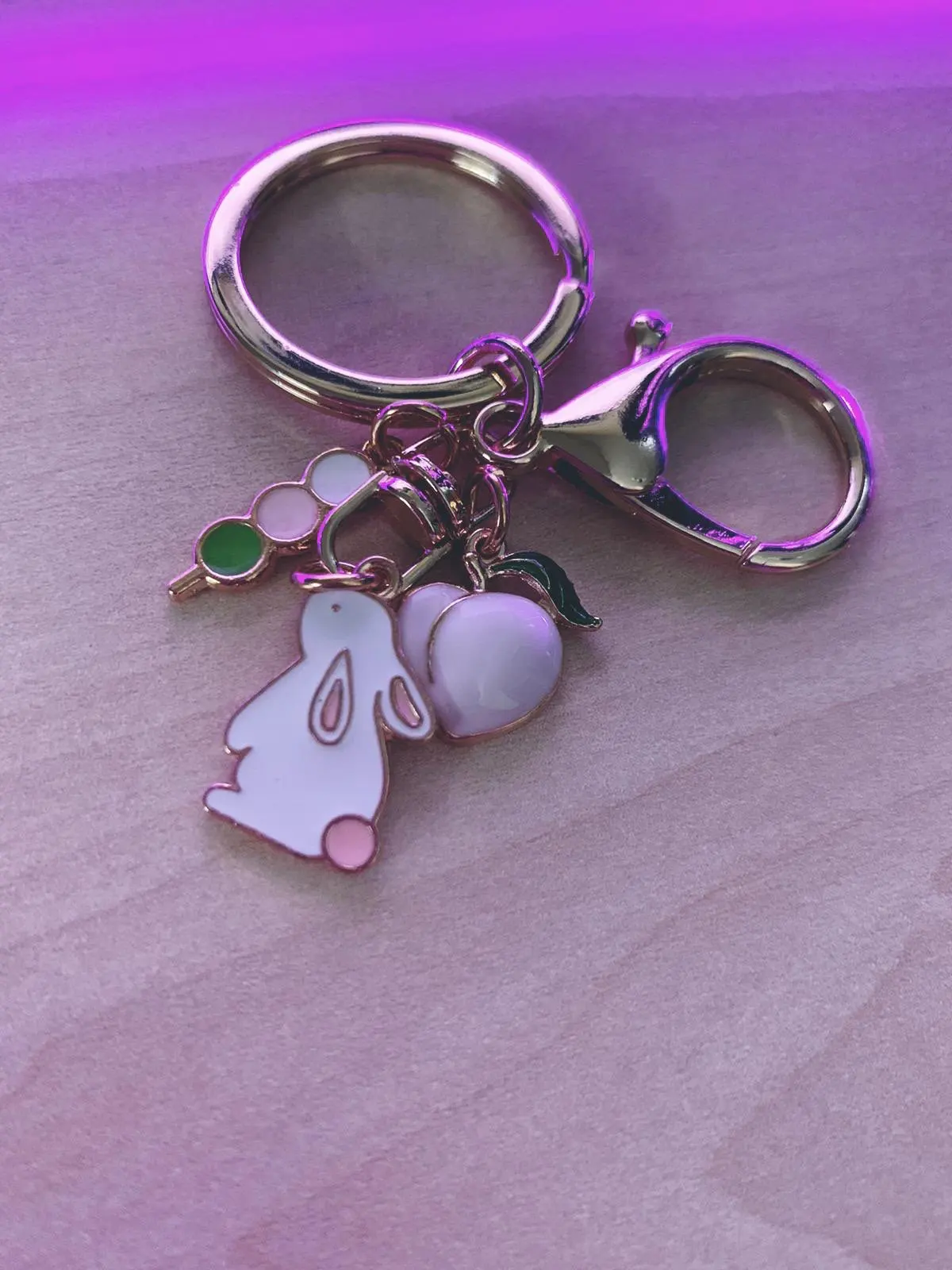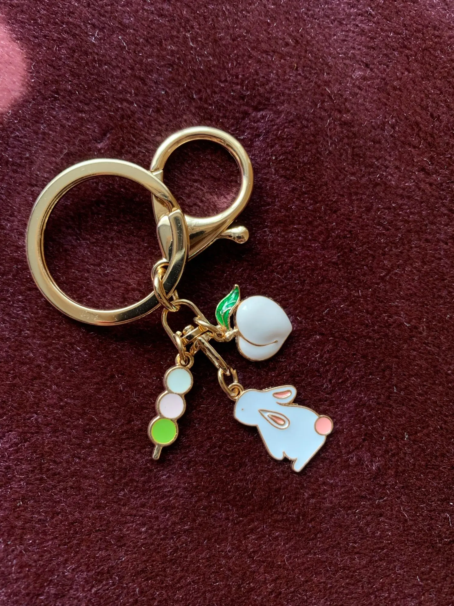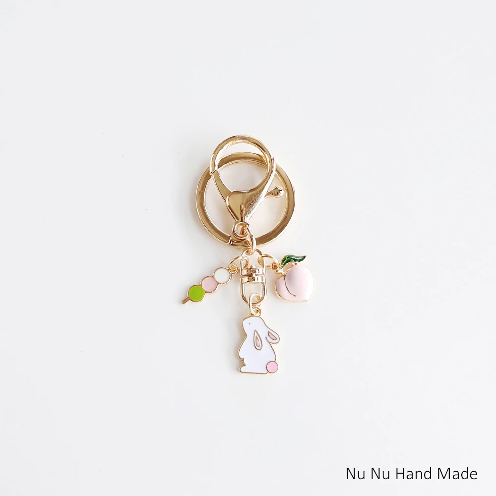 Брелок для ключей ручной работы сделай сам, милый кролик, фрукт, персик, подвеска на сумку, ювелирные изделия, аксессуары для автомобильных ключей из сплава, подарок для пар