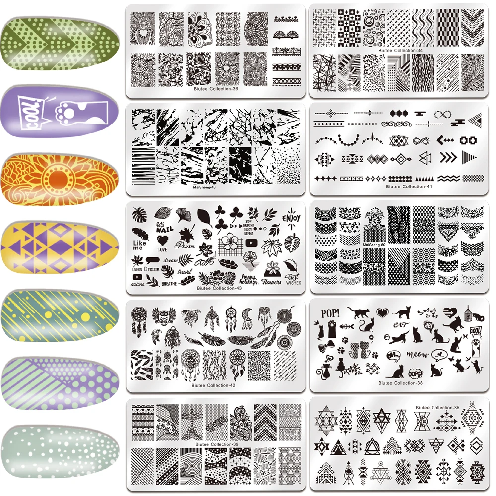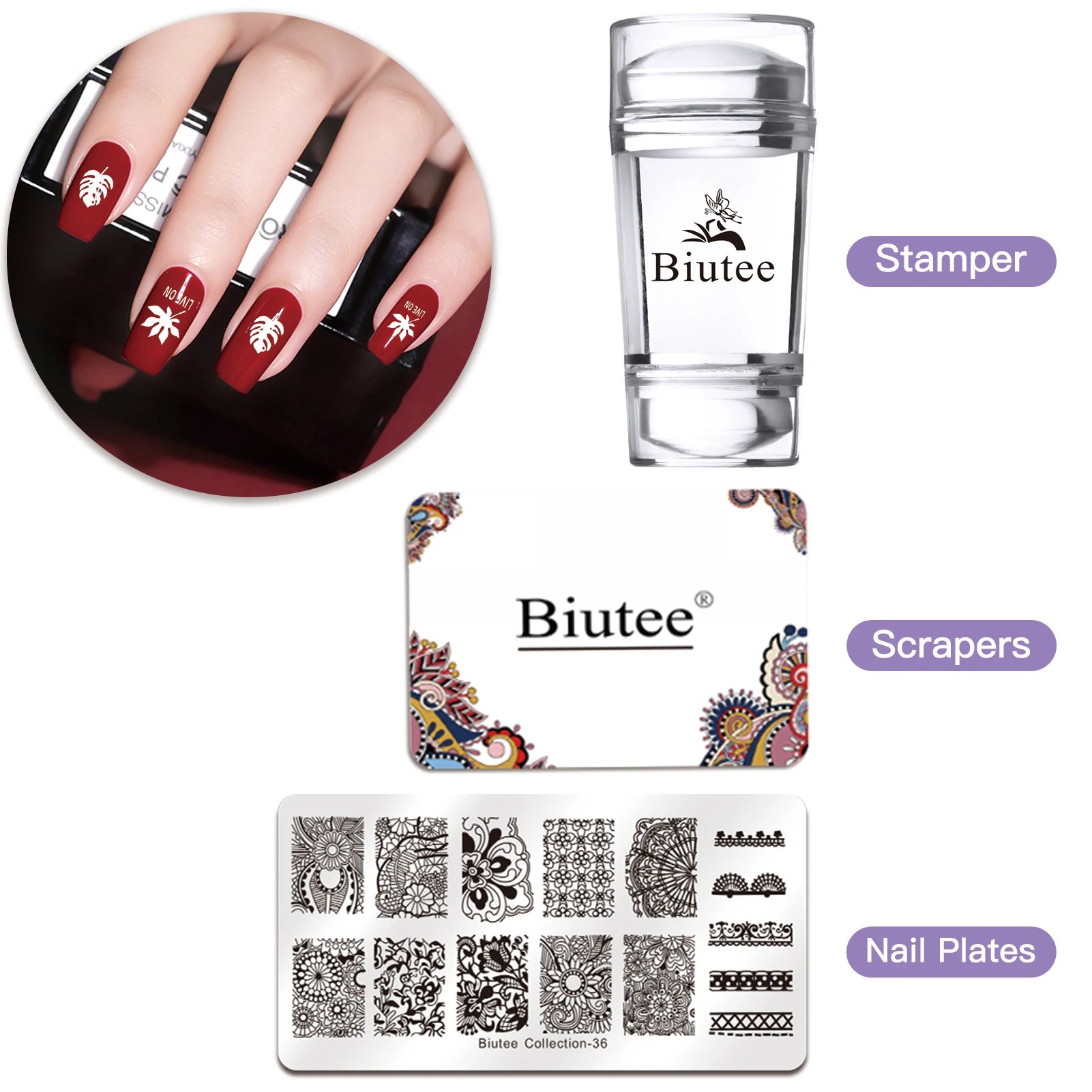 Набор для стемпинга ногтей BIUTEE, 18 шт.компл., 10 пластин, 4 насадки, 1 сумка для хранения, 2 сумочки для ногтей, кружевной цветок, стемпер для ногтей, изображение