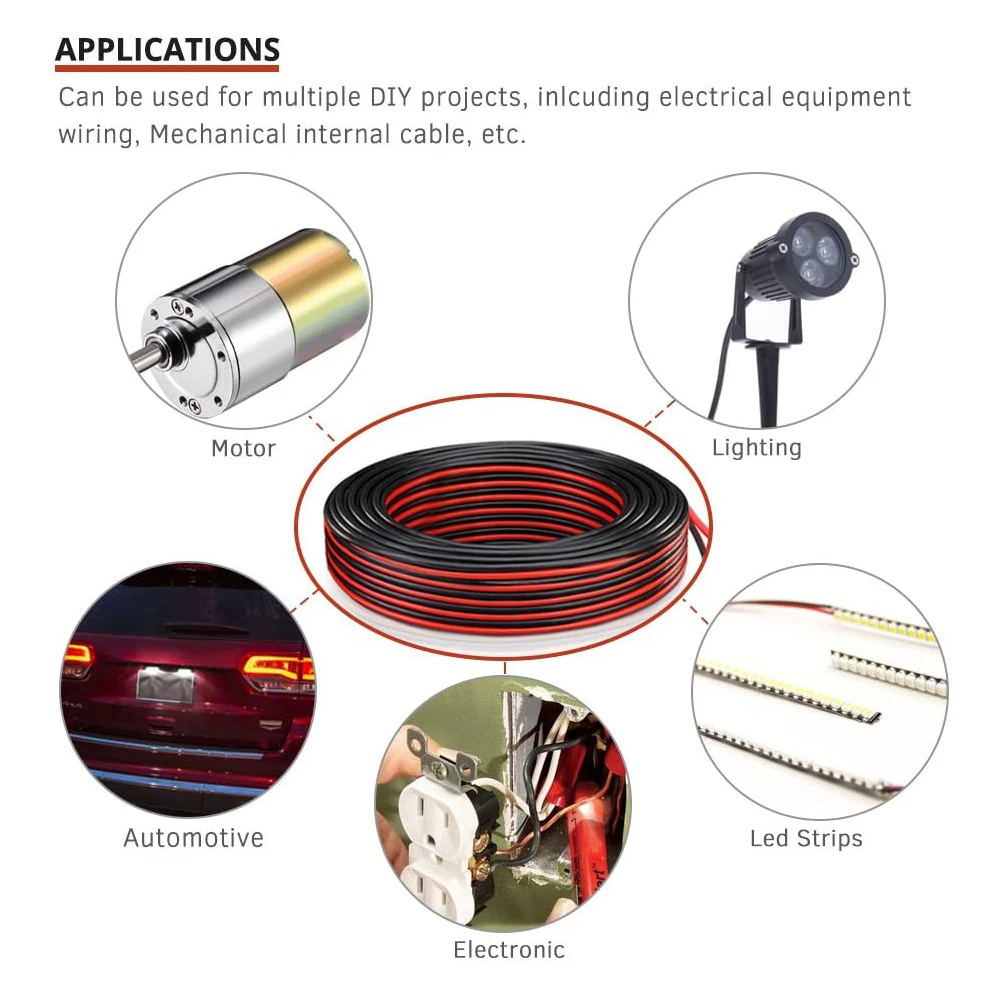 Электрический провод 20 AWG из луженой меди, 2-контактный, красный, черный, изолированный Удлинительный Шнур 300 В для промышленного светодиодный одного освещения или бытовой техники