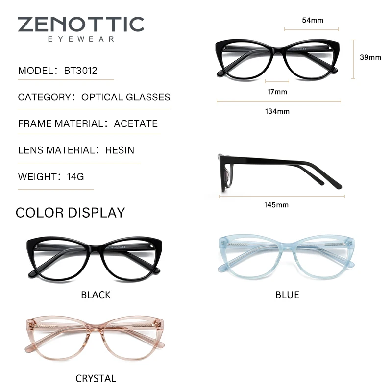 ZENOTTIC Винтаж ацетатная оправа для очков в стиле кошачьи глаза Для женщин антибликовыми свойствами светильник линзы прозрачные оптические Близорукость очки оправы для женских очков