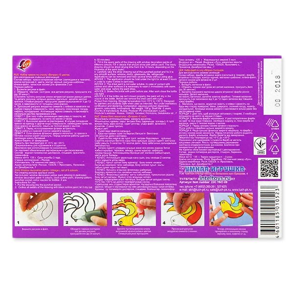 Краски витраж Луч пробуждают интерес к художественному творчеству и вдохновляют маленьких фантазеров. Пусть ребенок создаст красивые прозрачные изображения для украшения интерьера!