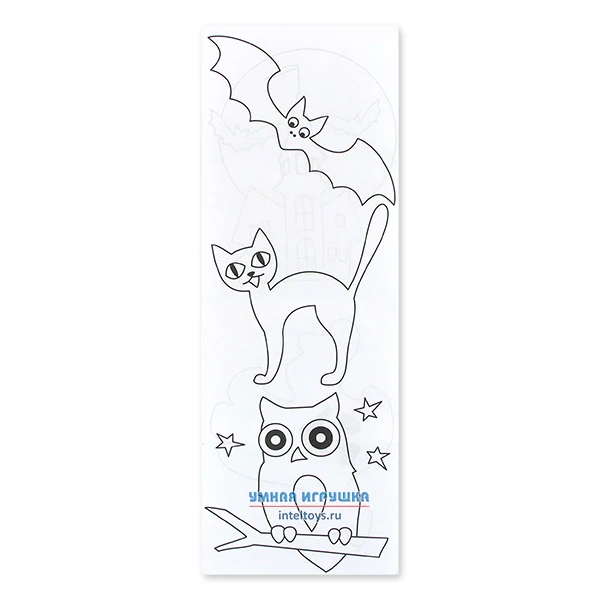 Яркий свет в темнотеВложите рисунок в прозрачный файл, обведите черным все контуры и через полчаса раскрасьте пустые места цветными красками. Когда работа просохнет, бережно снимите ее с пленки и наклейте на гладкую поверхность. На вашем окне или зеркале появляются таинственный замок с призраком, летучая мышь и дикая кошка, глазастая совушка – вы уже представили удивительную сказку на ночь?