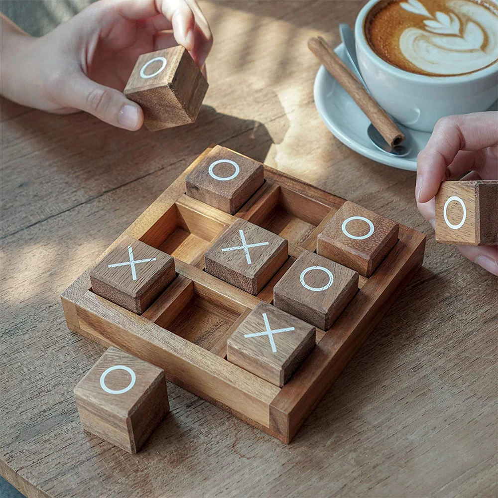 Настольная игра деревянная модными принтами XO шахматы взаимодействие между родителями и детьми интеллигентая (ый) логическая подготовка игрушки-пазлы подарки куртка из искусственной кожи для мальчиков и девочек 11,5*11,5*3 см