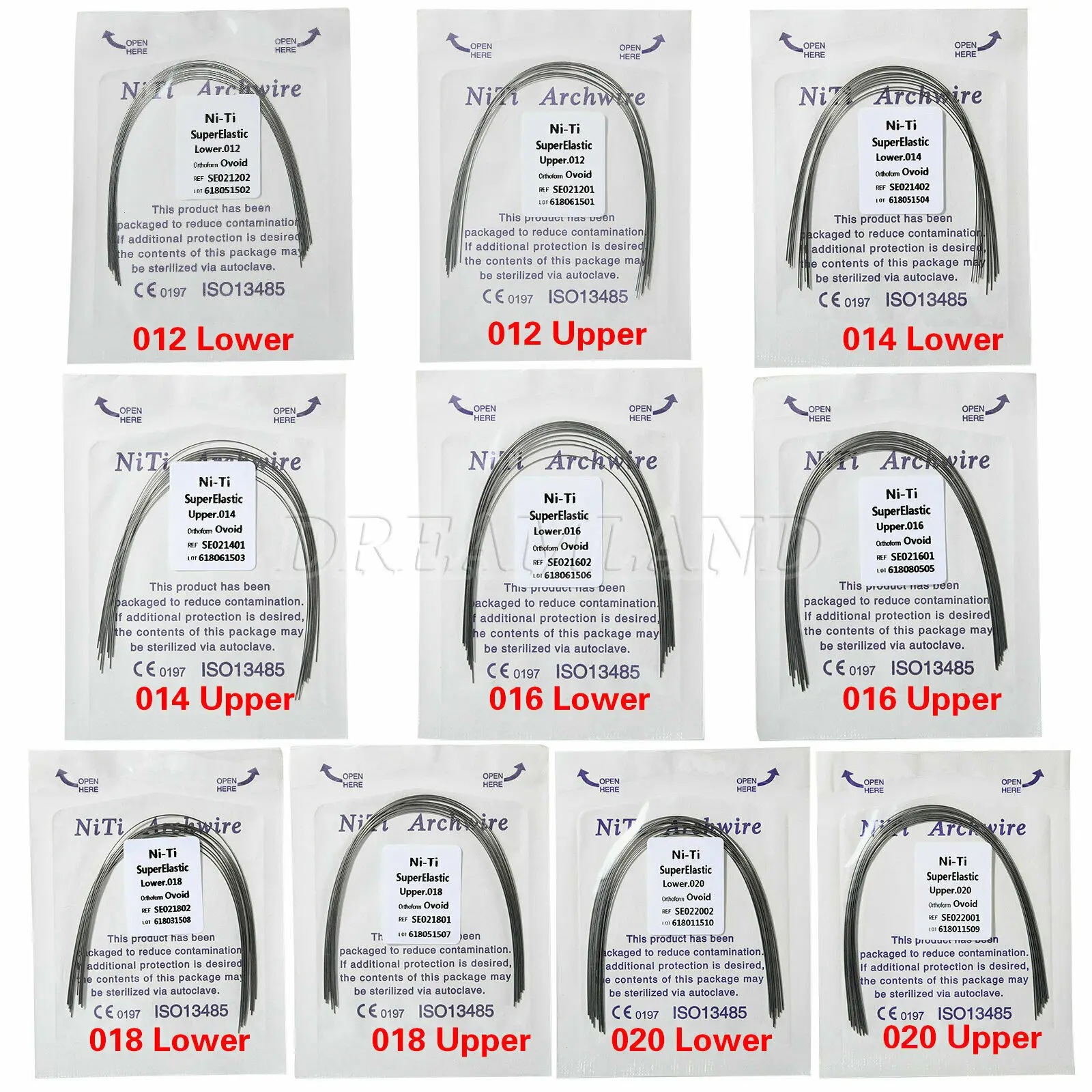 Стоматологическая металлическая Ортодонтическая круглая никель-титановая проволока, сверхэластичная, NITI Ovoid, 100 шт.10 упаковок