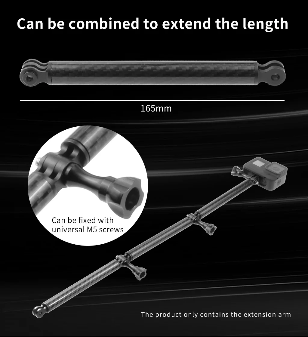 Удлинитель для шлема 6,5 дюйма, ручка для селфи, легкий штатив из углеродного волокна для GoPro Hero 10, 9, 8, 5 Max, кронштейн Insta360
