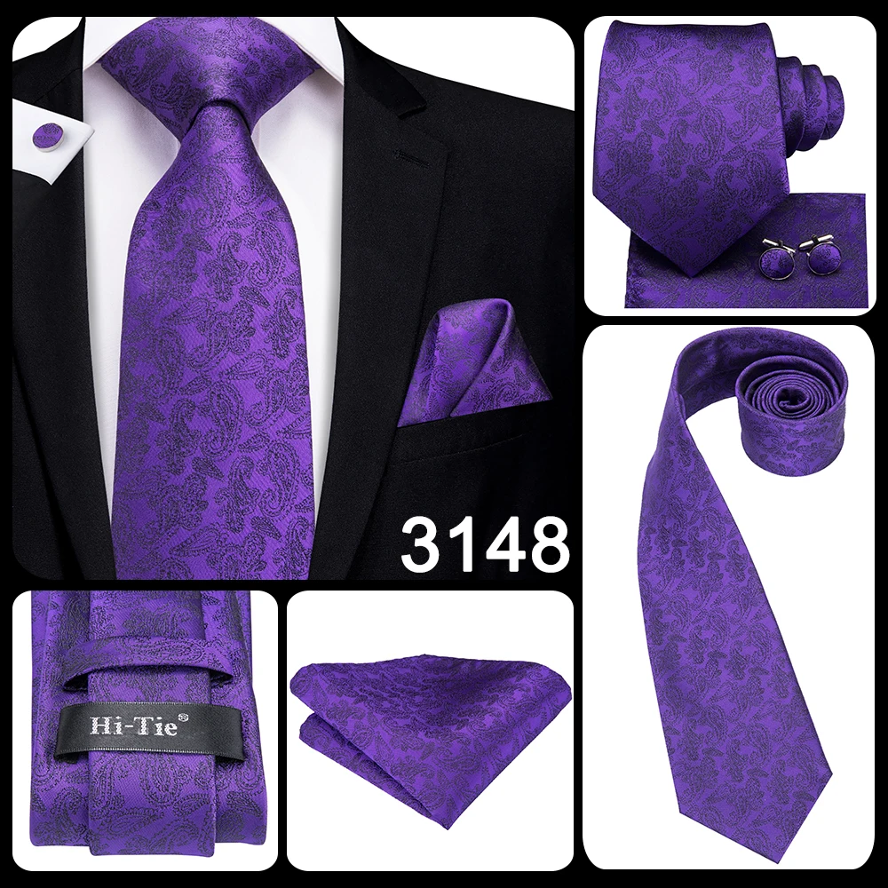 Hi-Tie Фиолетовый Синий однотонный дизайнерский 100% Шелковый Свадебный галстук для мужчин Hanky запонки бизнес галстук набор роскошный Gravata Прямая поставка