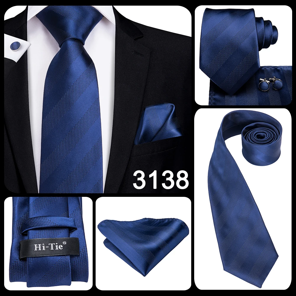 Привет-галстук темно-синий полосатый Шелковый Свадебный галстук для...