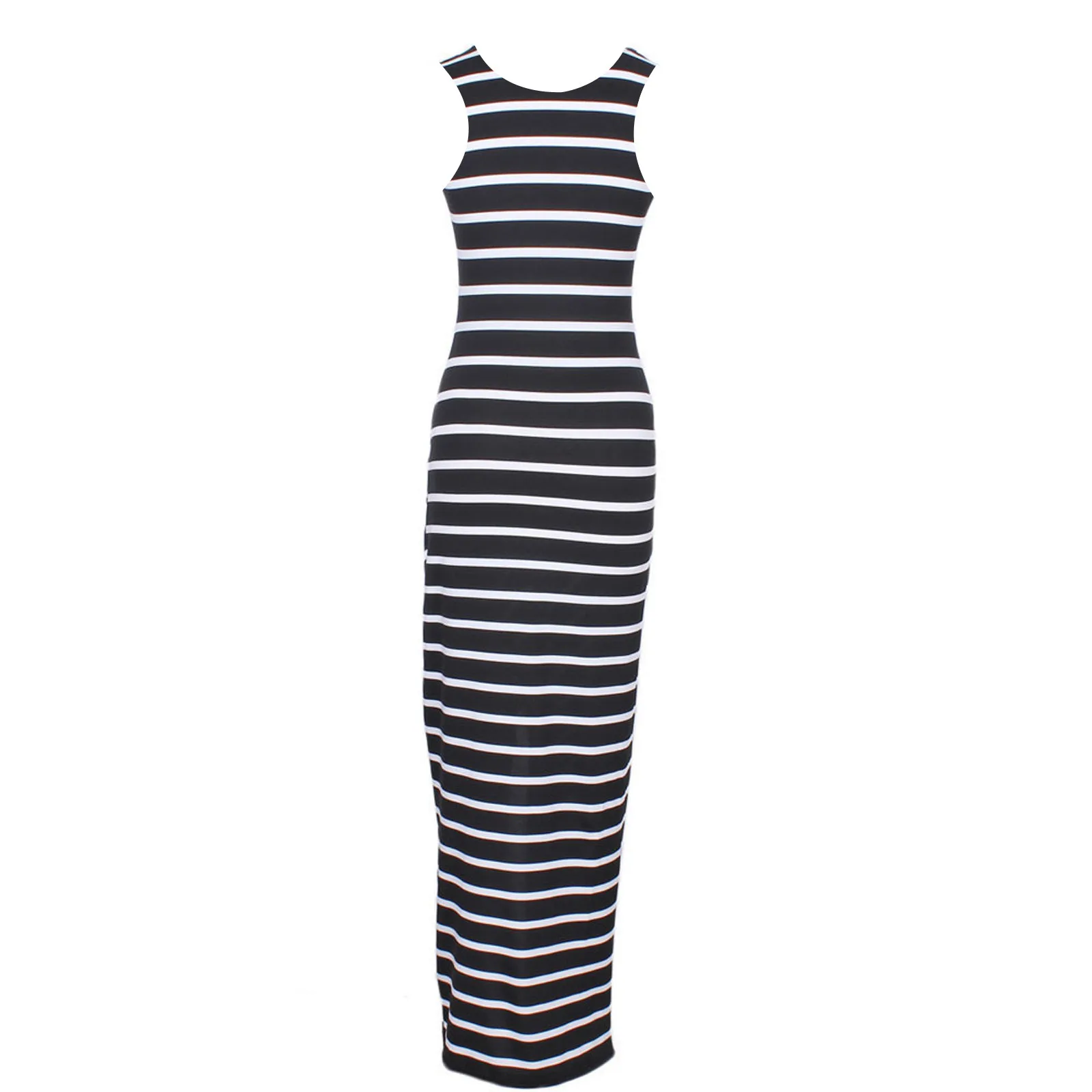 Платье женское длинное в полоску, повседневное пляжное модное платье без рукавов с разрезом, для отпуска и праздника, на лето