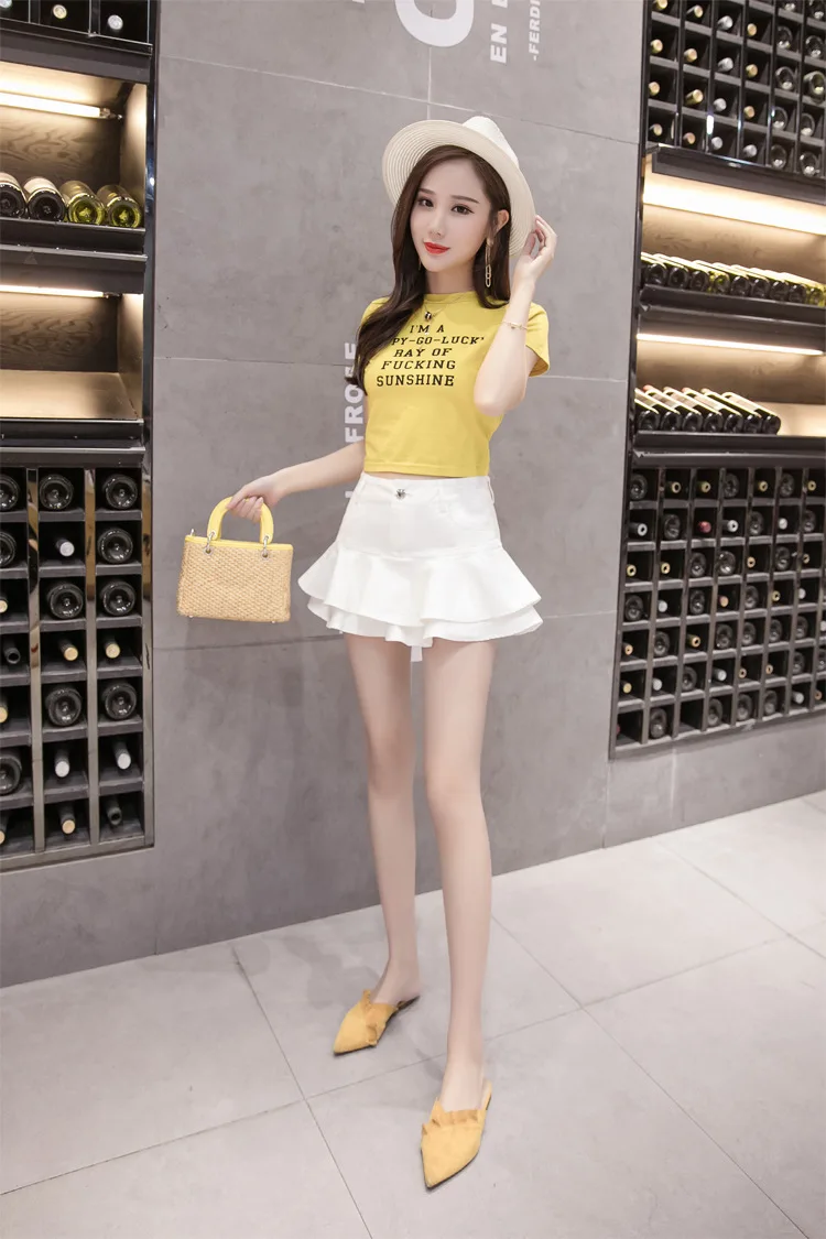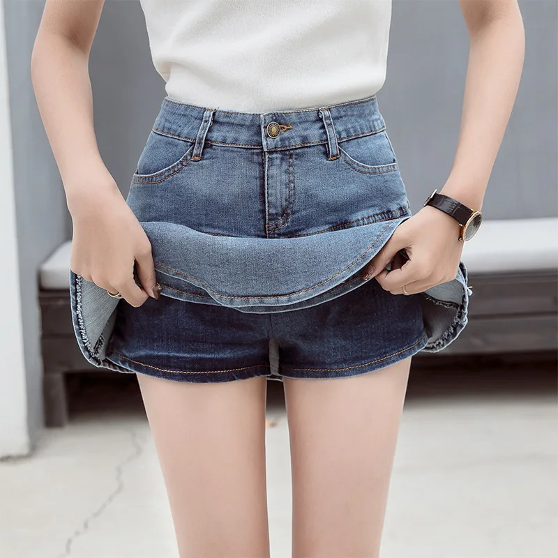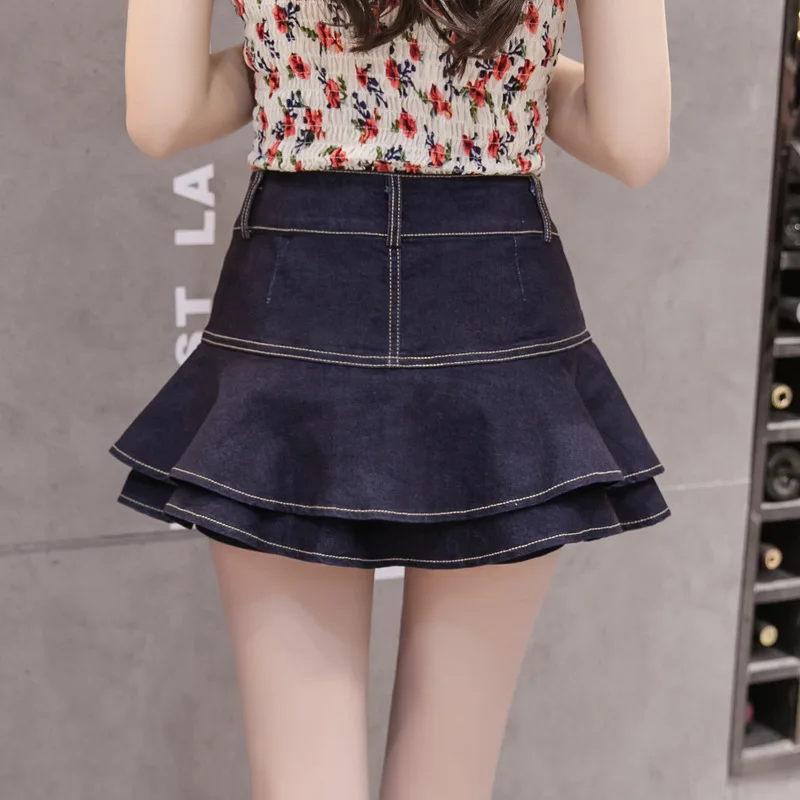 Юбка UETEEYMALL джинсовая женская винтажная Женская 2020 плиссированная с завышенной талией в Корейском стиле модная черная одежда для шорт
