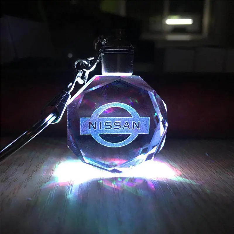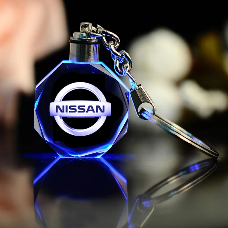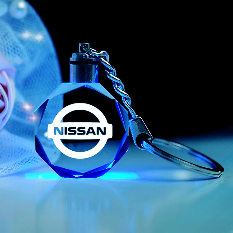 Брелок для ключей из хрустального стекла для стайлинга автомобиля с разноцветной вспышкой для Nissan, значок, Мужская подвеска, деловой подарок, автомобильные аксессуары, кольцо для ключей