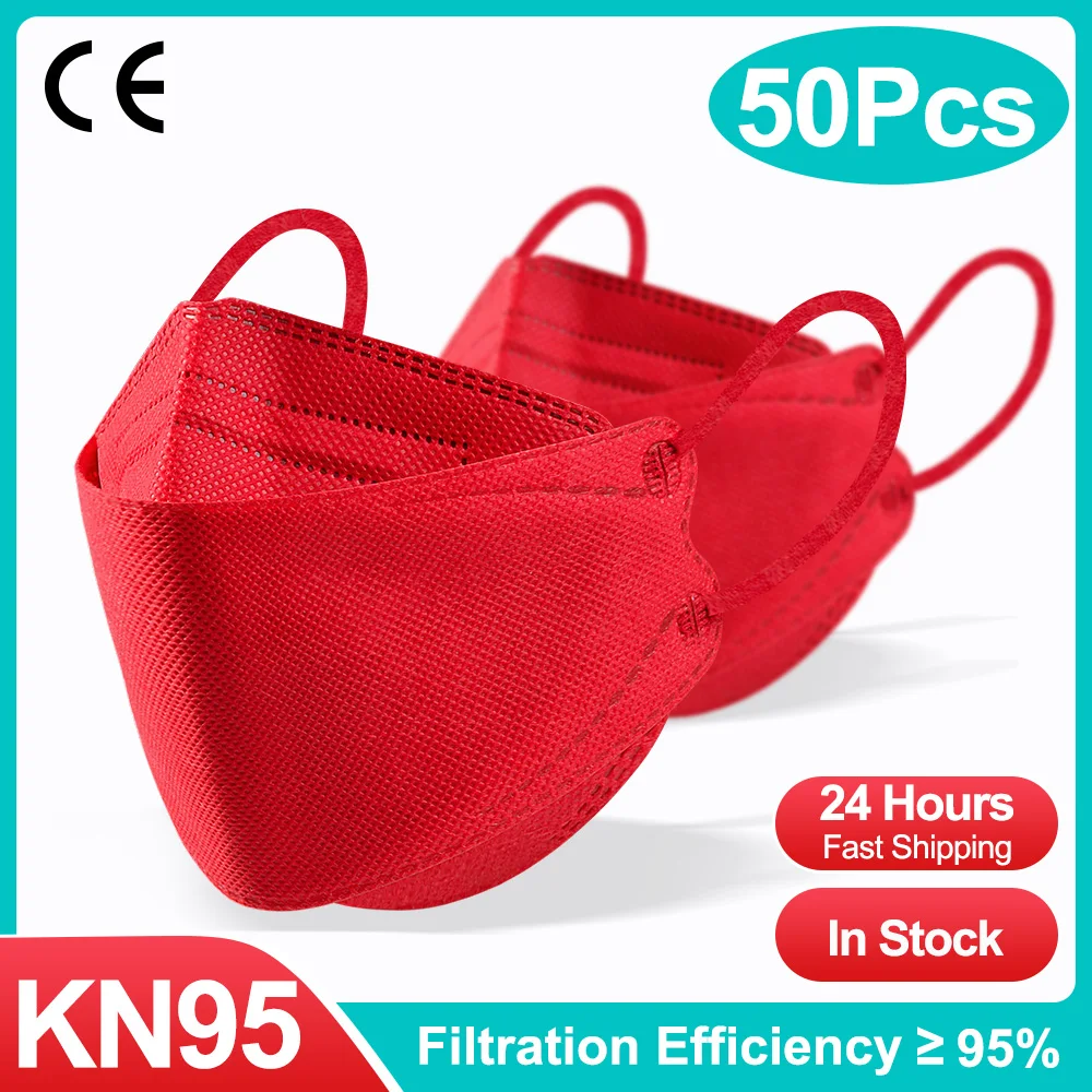 50100 шт KN95 рыбы маска для взрослых FFP2 фильтр респиратора с 4 с...