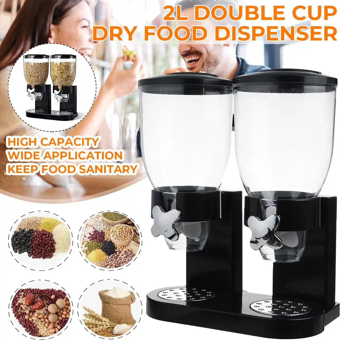 Контейнеры для хранения пищевых продуктов, пластиковый диспенсер для зерновых культур, 2 л4 л, многозерновые банки для хранения орехов, конфет, гранолы, Кухонное хранение