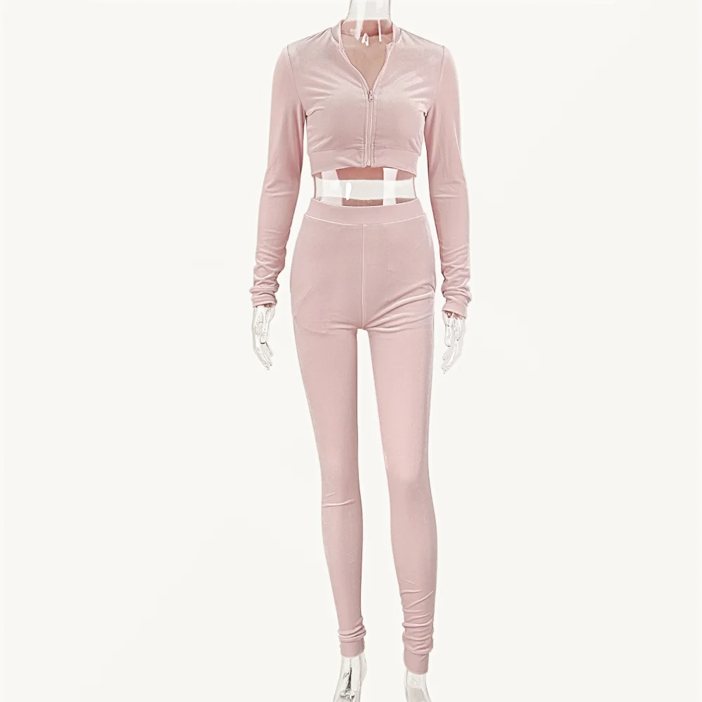 Бархатный спортивный костюм из 2 предметов, женский укороченный жакет на молнии, спортивный костюм, джоггеры, розовый комплект из двух предметов, свободные спортивные штаны, костюмы для бега