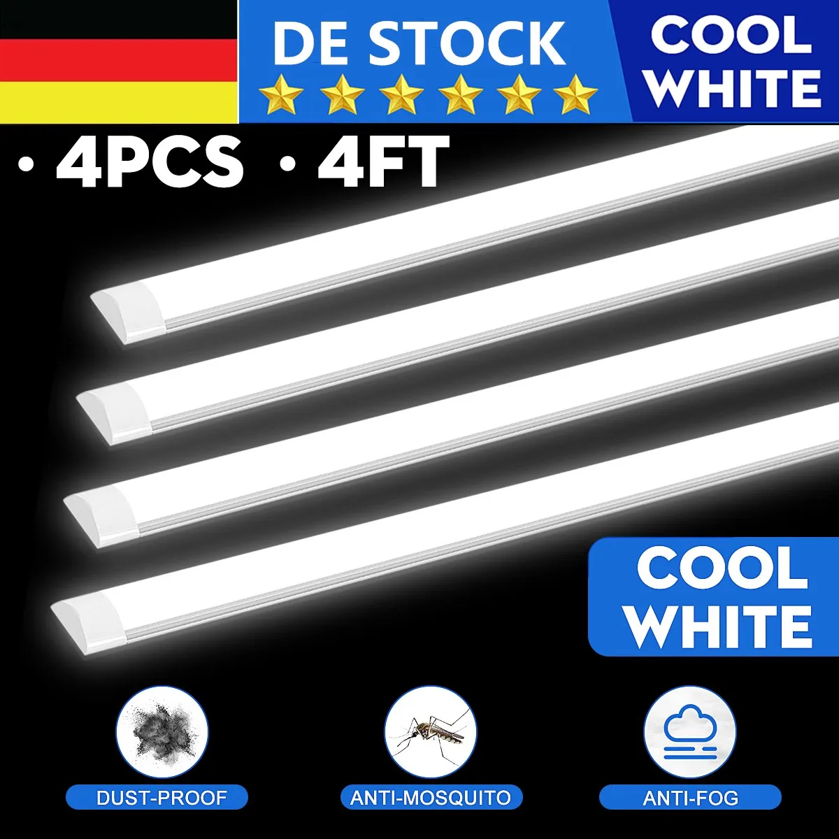 Светодиодсветильник лампа для поверхностного монтажа, 4 шт., 120 см, 85-265 В переменного тока, 2835SMD светодиодный ная линейная трубка для офиса, супермаркета, дома