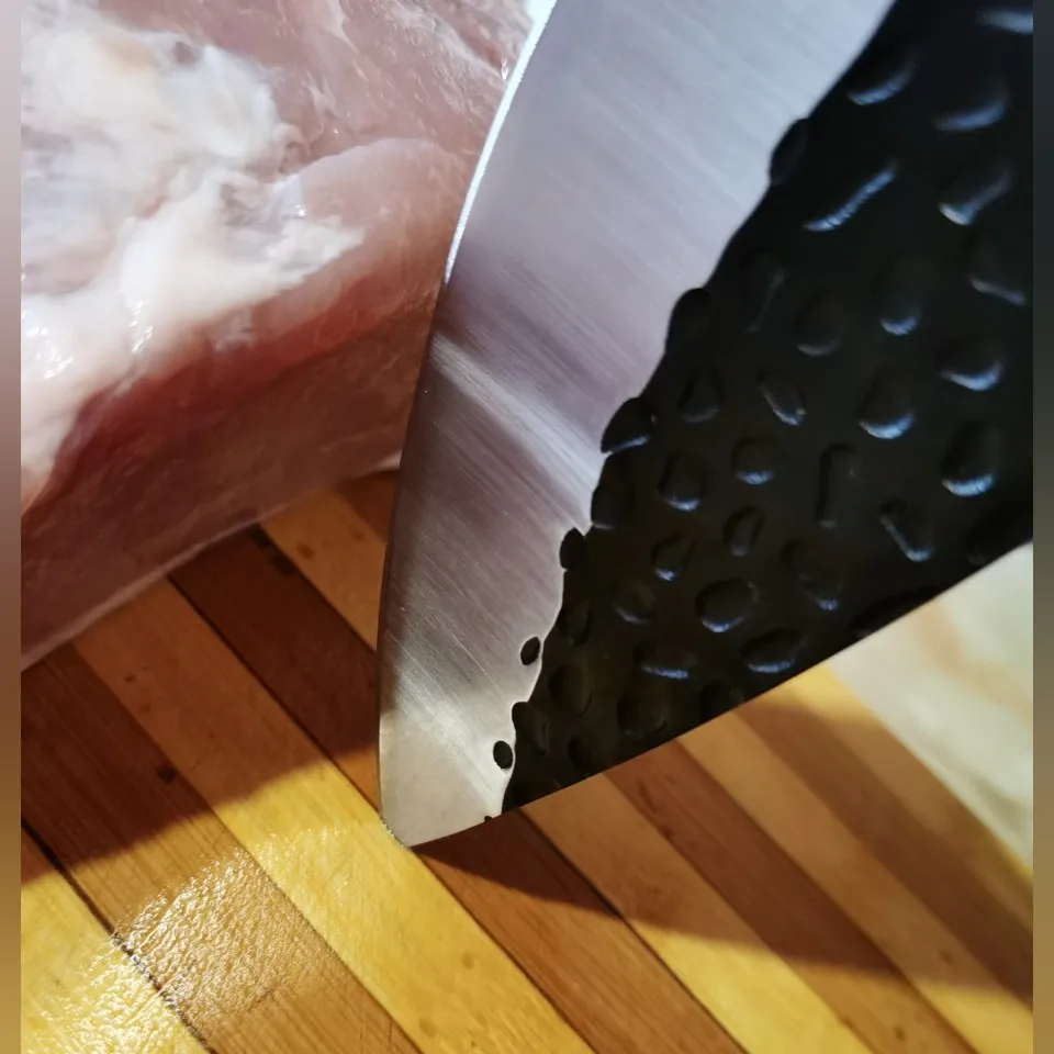 На сегодняшний день это мой фаворит. Плотное лезвие и очень удобный захват позволяют разделывать мясо за минуты. Даже свиные рёбра теперь не проблема: качество ножа проверяют именно так, на лезвии ни одной зазубрины. Смотрится нож стильно - рукоятка из цельной древесины, клинок из нержавеющей стали. Я заказала с чехлом, причём доплата небольшая, а оформление классное. Однозначно рекомендую.