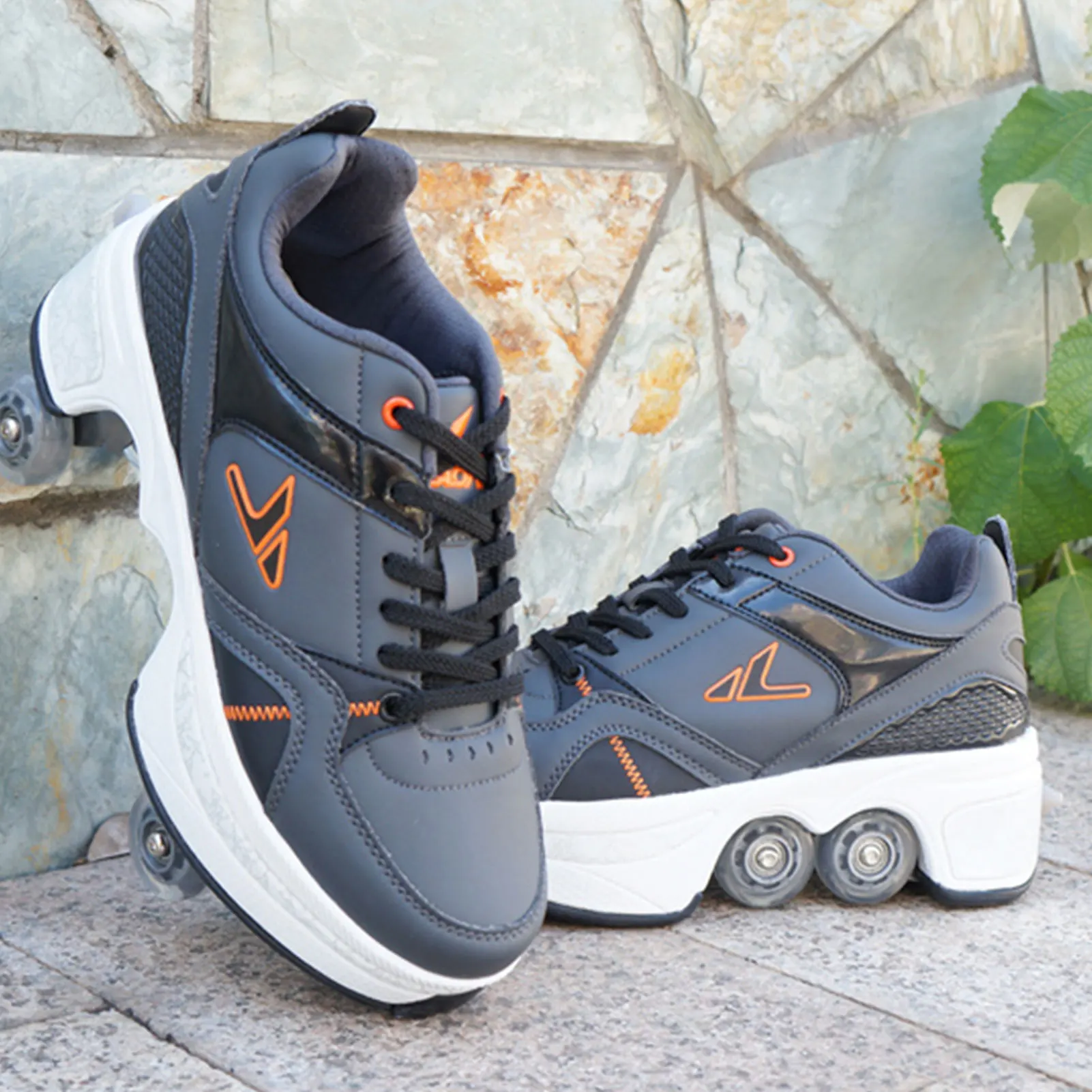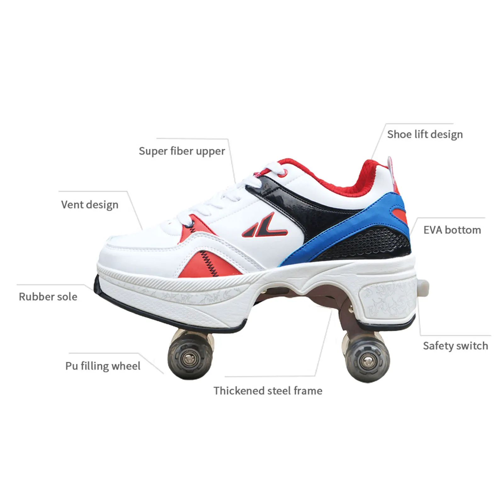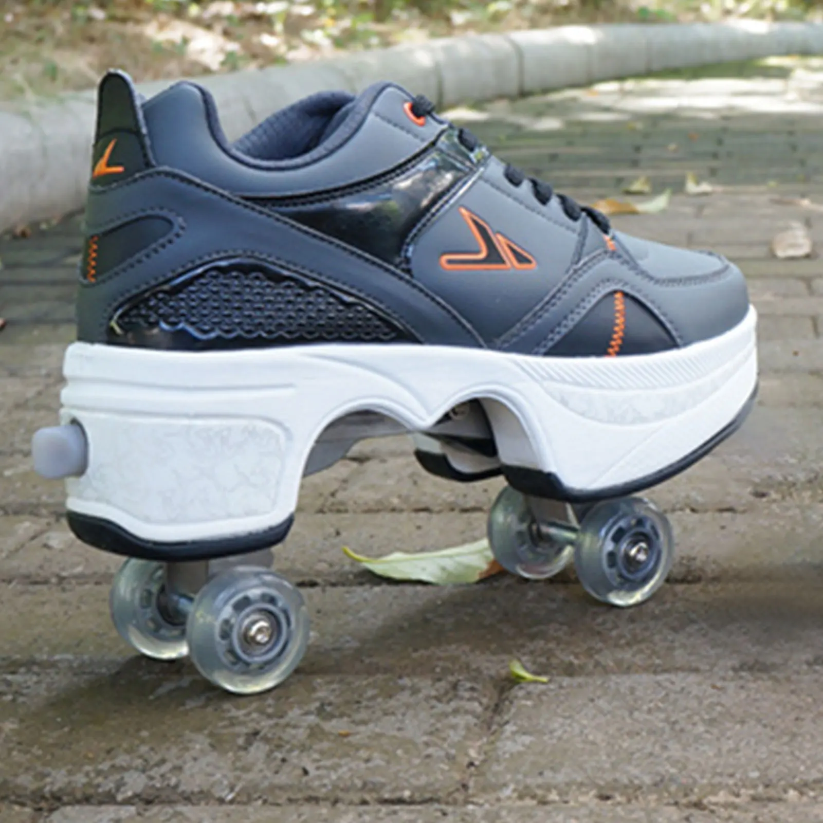 Полиуретановые роликовые туфли, невидимые роликовые коньки, туфли для паркура, четыре колеса, дышащие кроссовки для бега