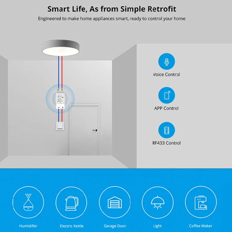 100% абсолютно новый и высококачественный портативный и прочный, легко носить с собой, легкая домашняя Автоматизация-это «Интернет вещей». То, как все наши устройства и приборы будут объединены в сеть, чтобы обеспечить нам бесшовный контроль над всеми аспектами нашего дома и многое другое. Этот продукт является недорогим и доступным, который поможет вам войти в удивительный умный дом. Это беспроводной переключатель Wi-Fi, который может подключаться к прибору различных типов и брендов. Продукт отправляет данные на облачную платформу через Wi-Fi роутер, который позволяет удаленно управлять всеми устройствами с помощью приложения eWeLink на вашем смартфоне. Продукт делает все ваши бытовые приборы умными, если ваш телефон имеет сеть, вы можете удаленно включить или выключить ваши приборы из любого места в любое время. И установив графики для ваших приборов, вы можете поддерживать беззаботный срок службы. Поддержка сети WiFi. Поддержка отслеживания состояния, своевременные отзывы о состоянии бытовой техники в вашем приложении. С ситемой удаленной поддержки Включите или выключите дополнительные устройства. Поддержка множества смарт-переключателей WiFi одного смартфона. Простая установка, простота в обращении и может быть активирована немедленно и стабильно.