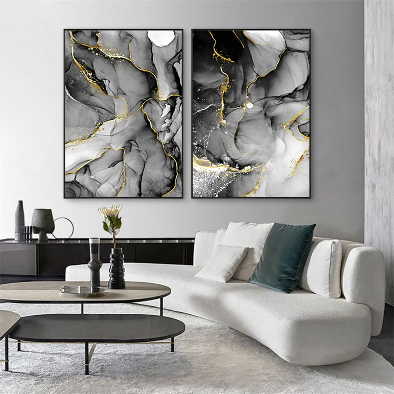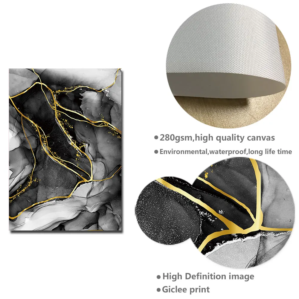 Абстрактный холст с золотой текстурой чернил, черно-белый художественный роскошный стиль, настенная живопись, декоративная картина, Современный домашний декор