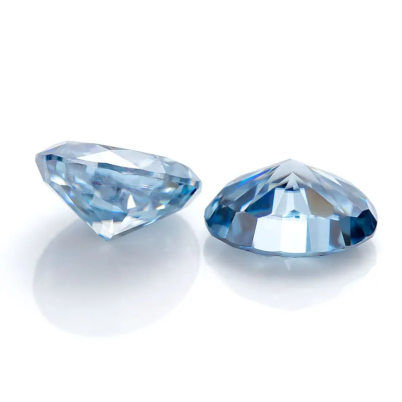 Драгоценный камень Aqua Blue, Круглый, свободный, Фабричный Муассанит