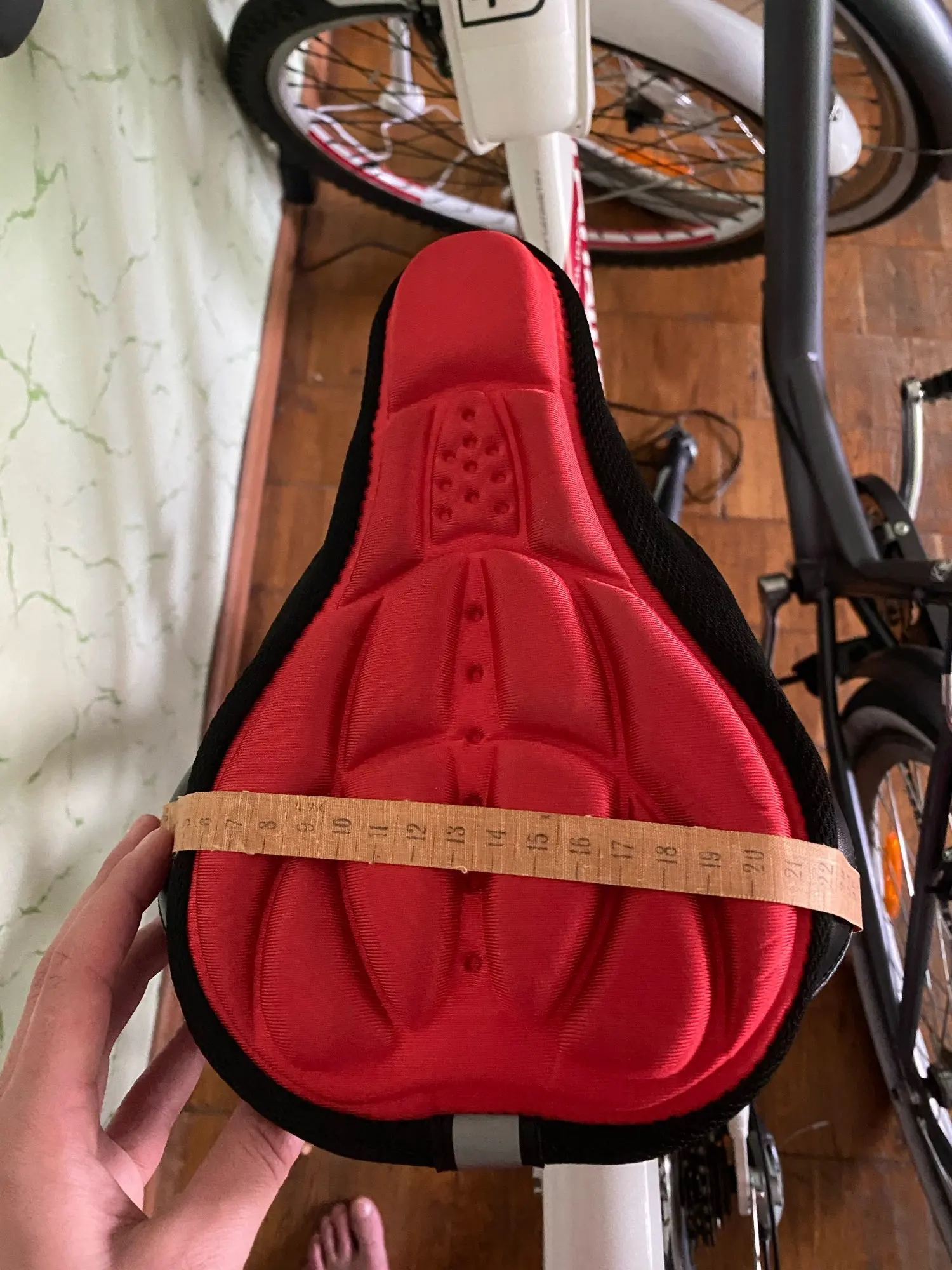 Посылку отправили через день. Доставка заняла 20 дней. Накладка на седло была упакована просто в пакет. Из-за отсутствия защиты во время транспортировки образовалось пару вмятин в подушечках. Поскольку вмятины не выровнялись, я сделал вывод что гелем из описания там и не пахнет, хотя сами подушки достаточно мягкие. Размер подошёл идеально, пошив аккуратный. Неприятного запаха не ощущается. На выходных протестую в движении дополню отзыв. С продавцом не общался.